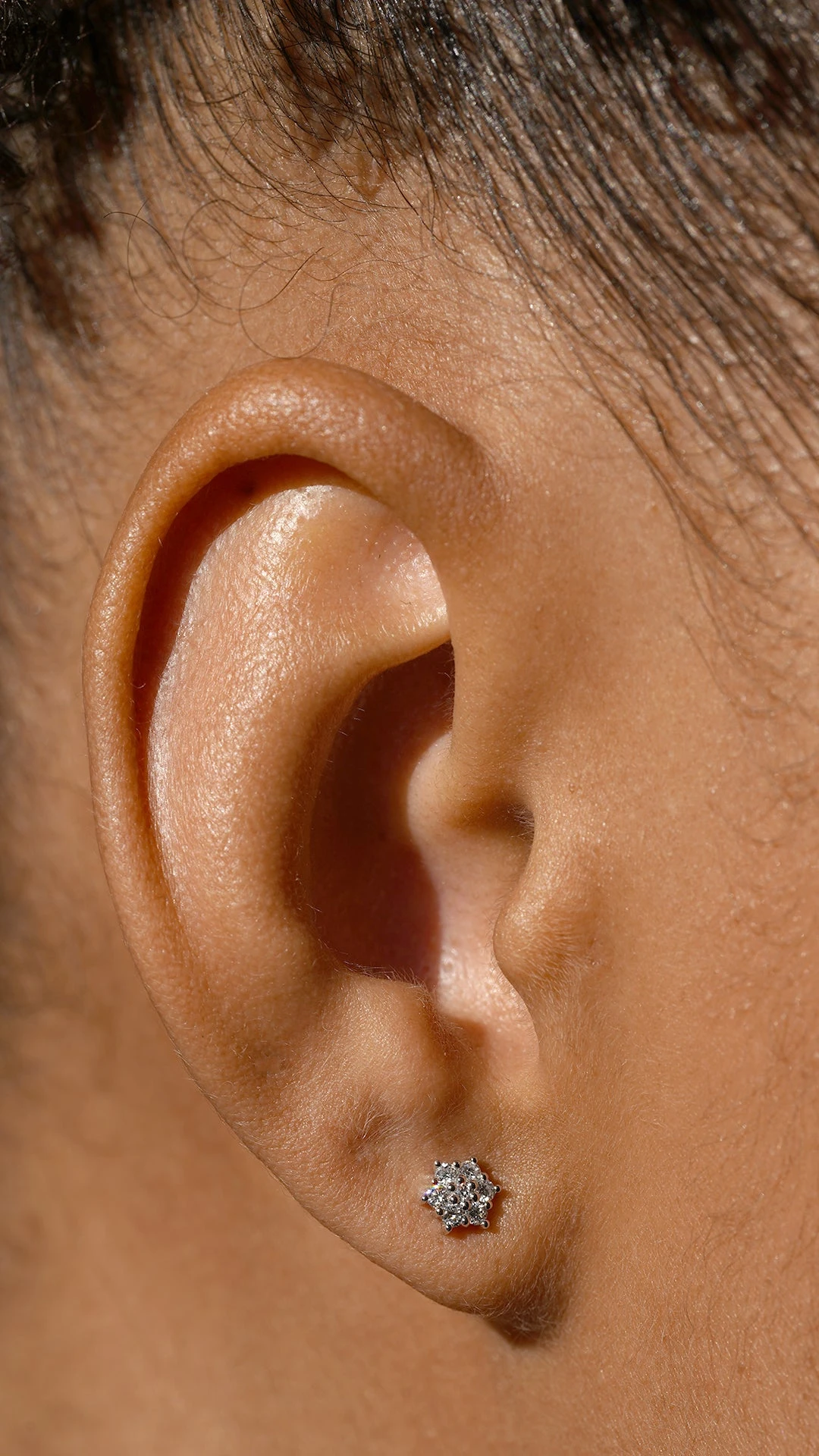 A cute flower cluster stud made with our GENTLE DIAMONDS. Suitable for any ear stack. Wear with other studs or small hoops to build on the look.