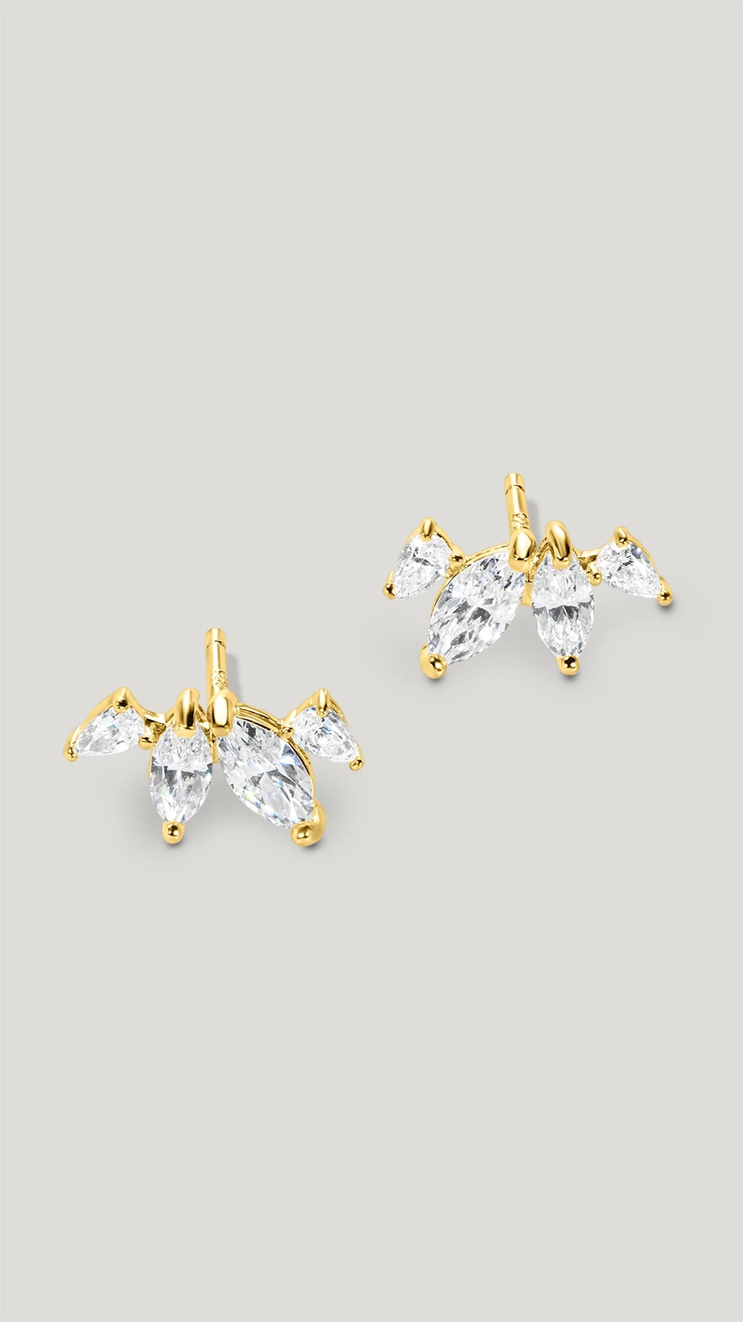This delicate pair features Pear and Marquise cut cluster stones handcrafted in 18K Gold Vermeil finish. Its petite shape makes it perfect for everyday wear.