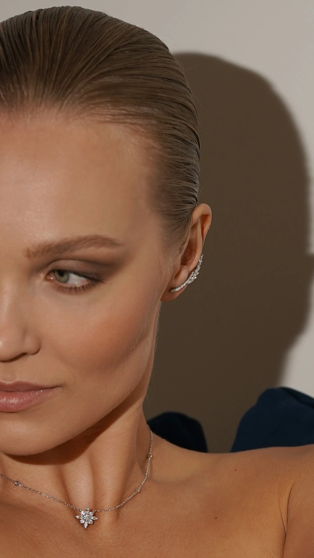 Sterling Silver | White Gold Finish | Single Ear Climber