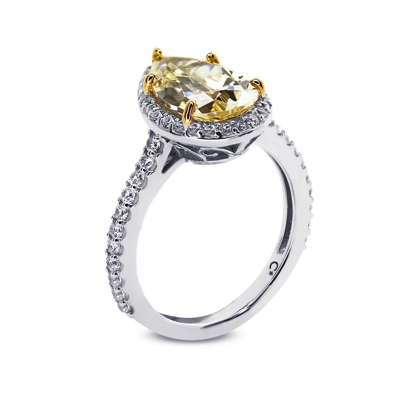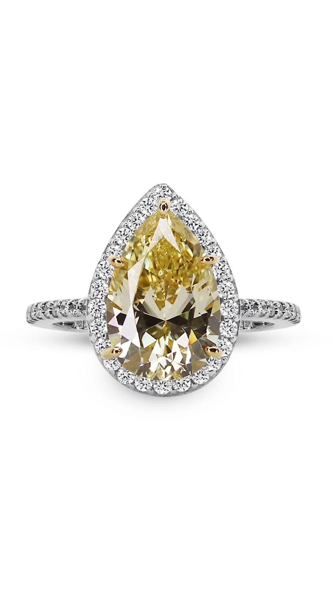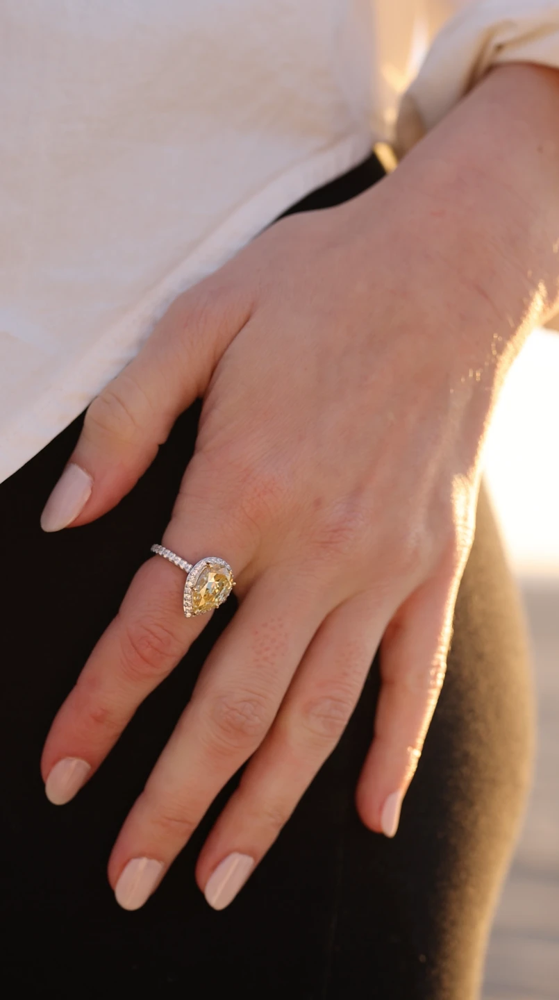 This classic cocktail ring features our exquisitely cut and polished pear-cut stone surrounded by a glittering border setting. Set in Sterling Silver and white gold plated, this piece is the perfect treat for yourself to a versatile cocktail ring.
