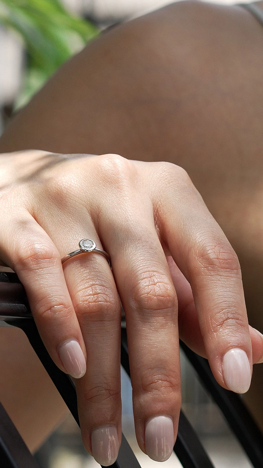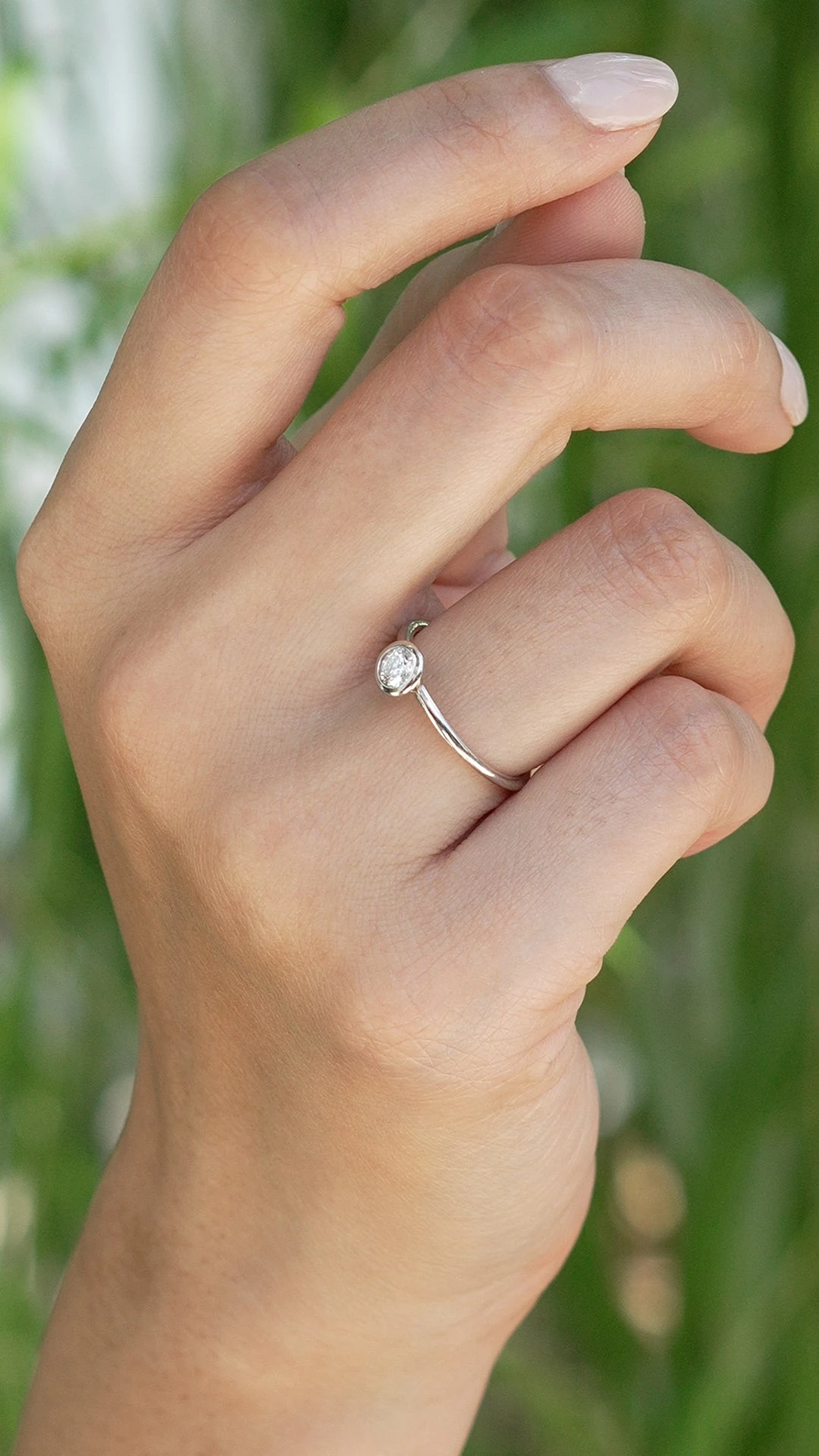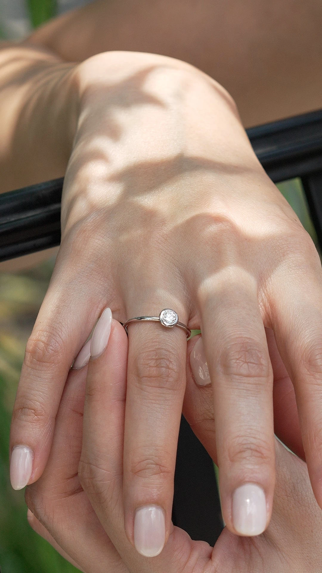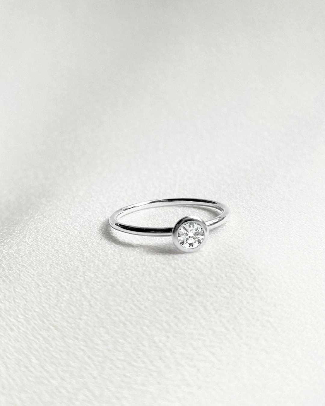The Maisie ring features a glittering round brilliant GENTLE DIAMOND set in a polished 9K gold bezel. We love this ring gifted as a promise ring or an effortless everyday essential.