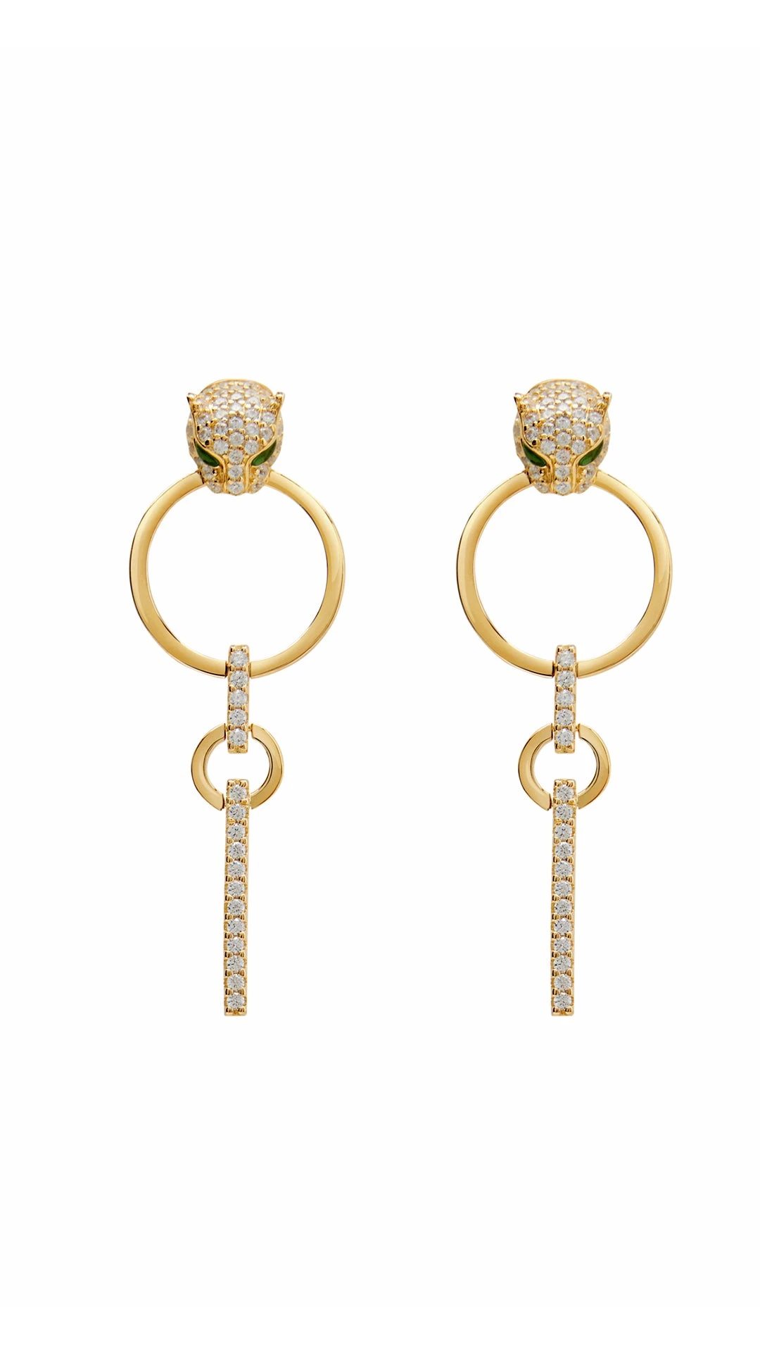 Majestic and alluring, the Maumau collection exudes glamour and elegance. Featuring a striking cat head, finished with piercing eyes in a peridot hue and intricate microstone detailing. Geometric details are inspired by the golden Hollywood era. The Maumau drop earrings are a beautiful vintage-inspired pair that you will find yourself reaching for repeatedly on dressier occasions. Team with other pieces from the Maumau collection.