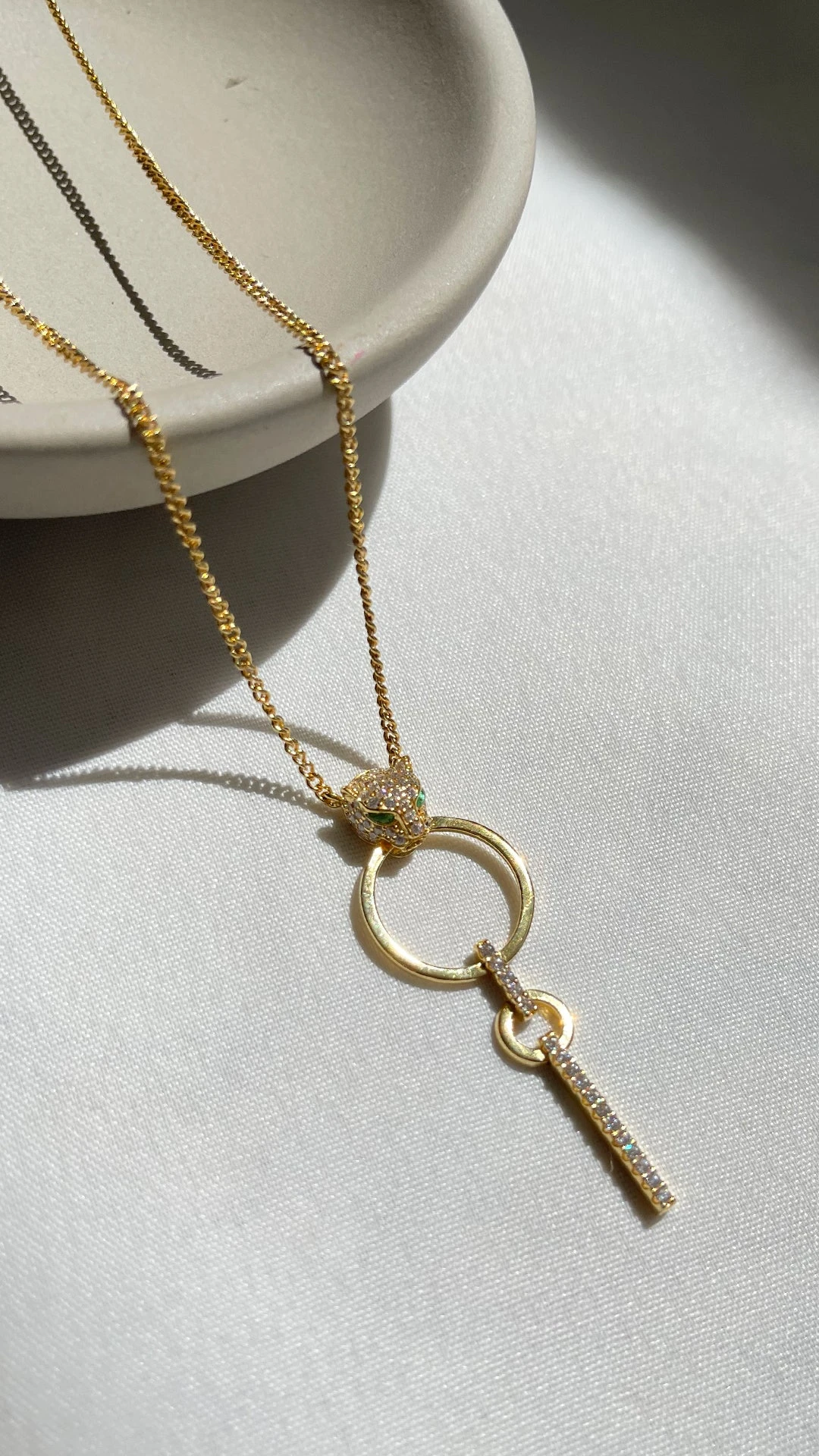 Majestic and alluring, the Maumau collection exudes glamour and elegance. Featuring a striking cat head, finished with piercing eyes in a peridot hue and intricate microstone detailing. Geometric details are inspired by the golden Hollywood era. The Maumau drop necklace is designed to be worn either long or short depending on your look. Team with other pieces from the Maumau collection.