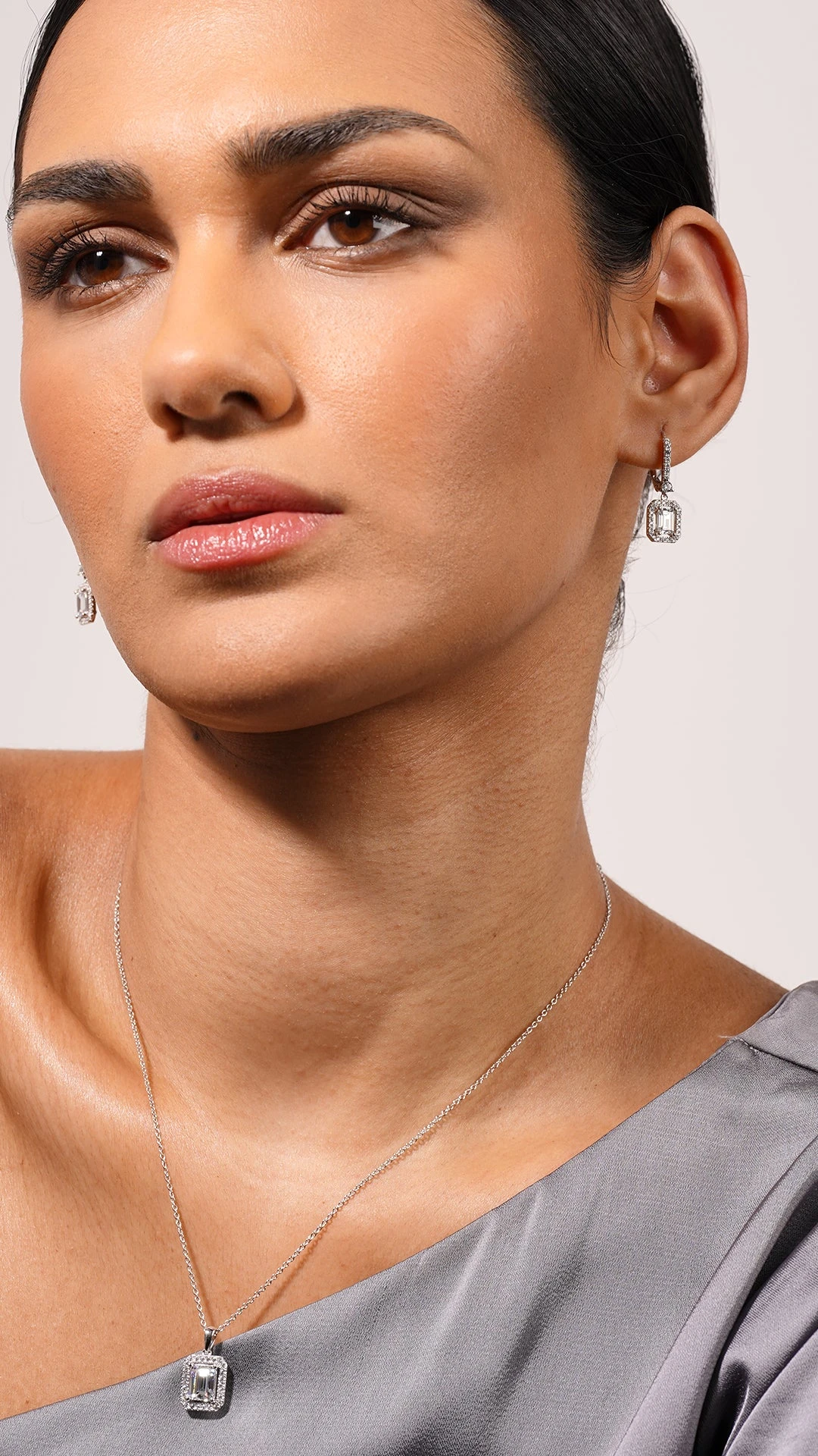 Sterling Silver | White Gold Finish | 0.5 ct eq. each | 2.7cm Drop