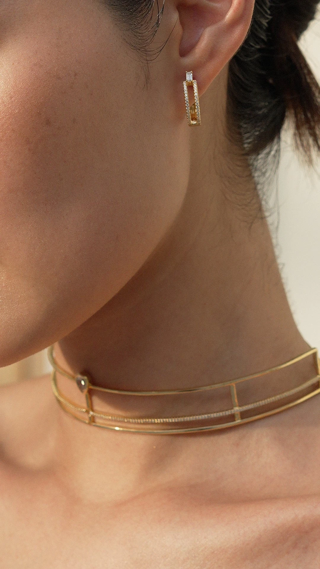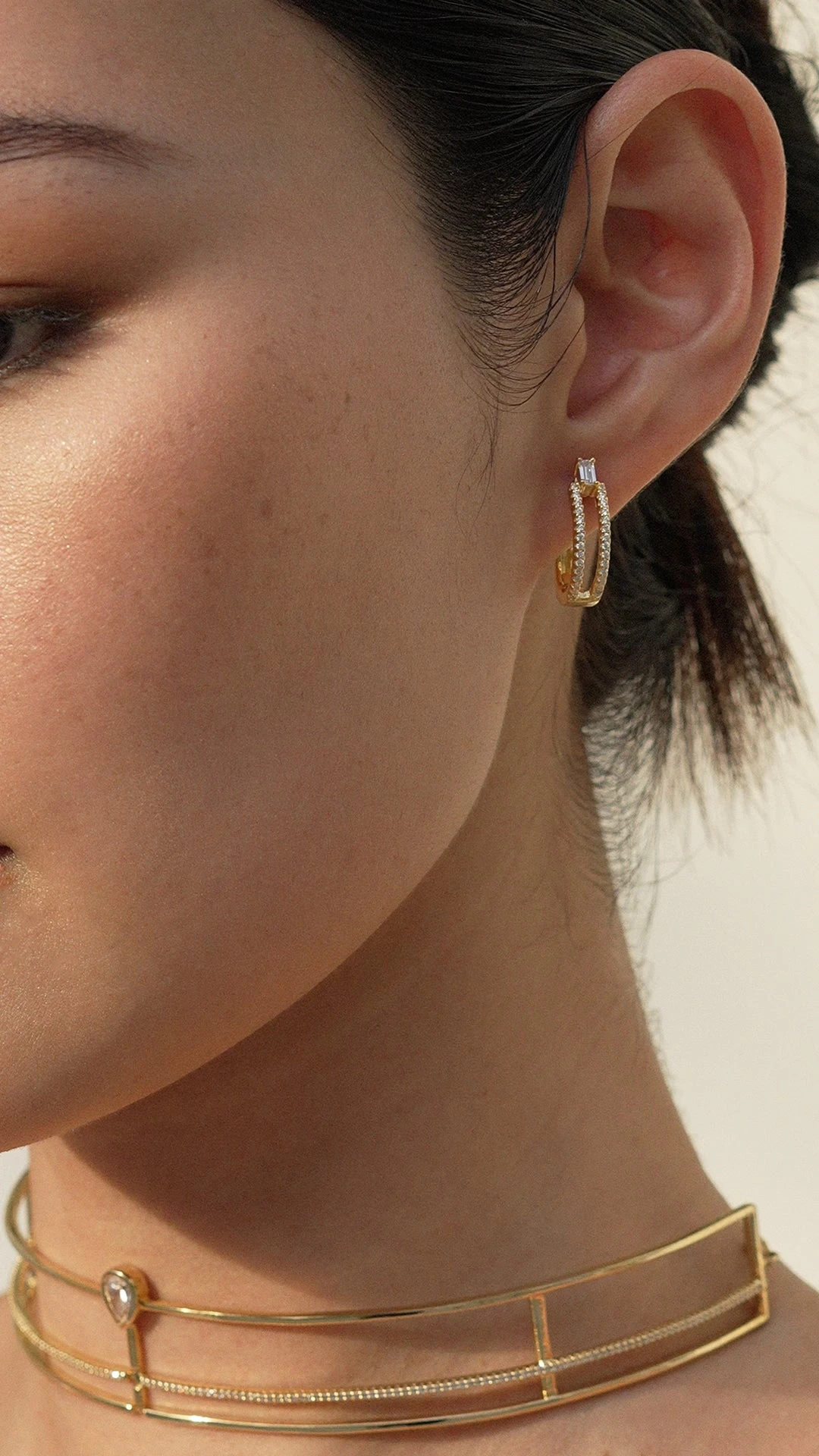 Embellished with a baguette cut centre stone and micro setting details. Show them off with a casual updo.