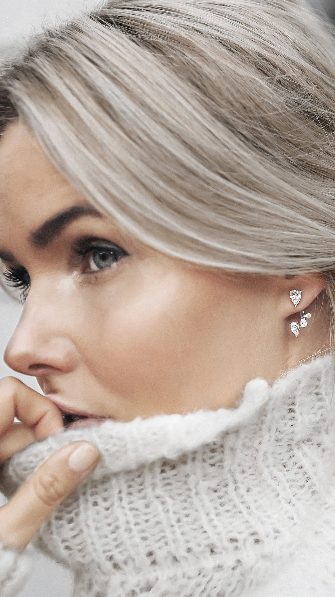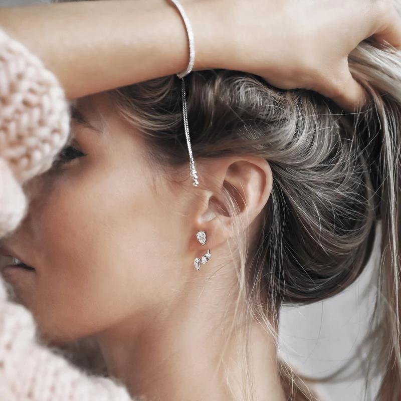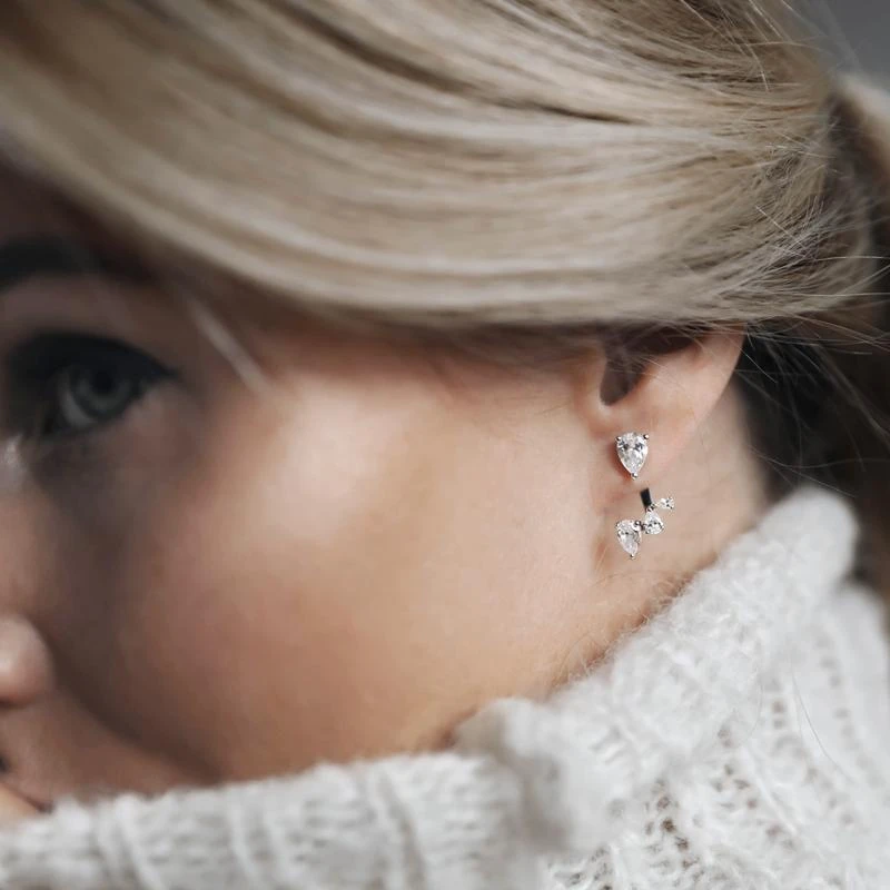 Easily detachable ear jackets that allow them to be customised to suit you. Wear them as a pair, as a simple stud or master the asymmetrical trend and mix and match them with your favourite stud earrings for different looks.