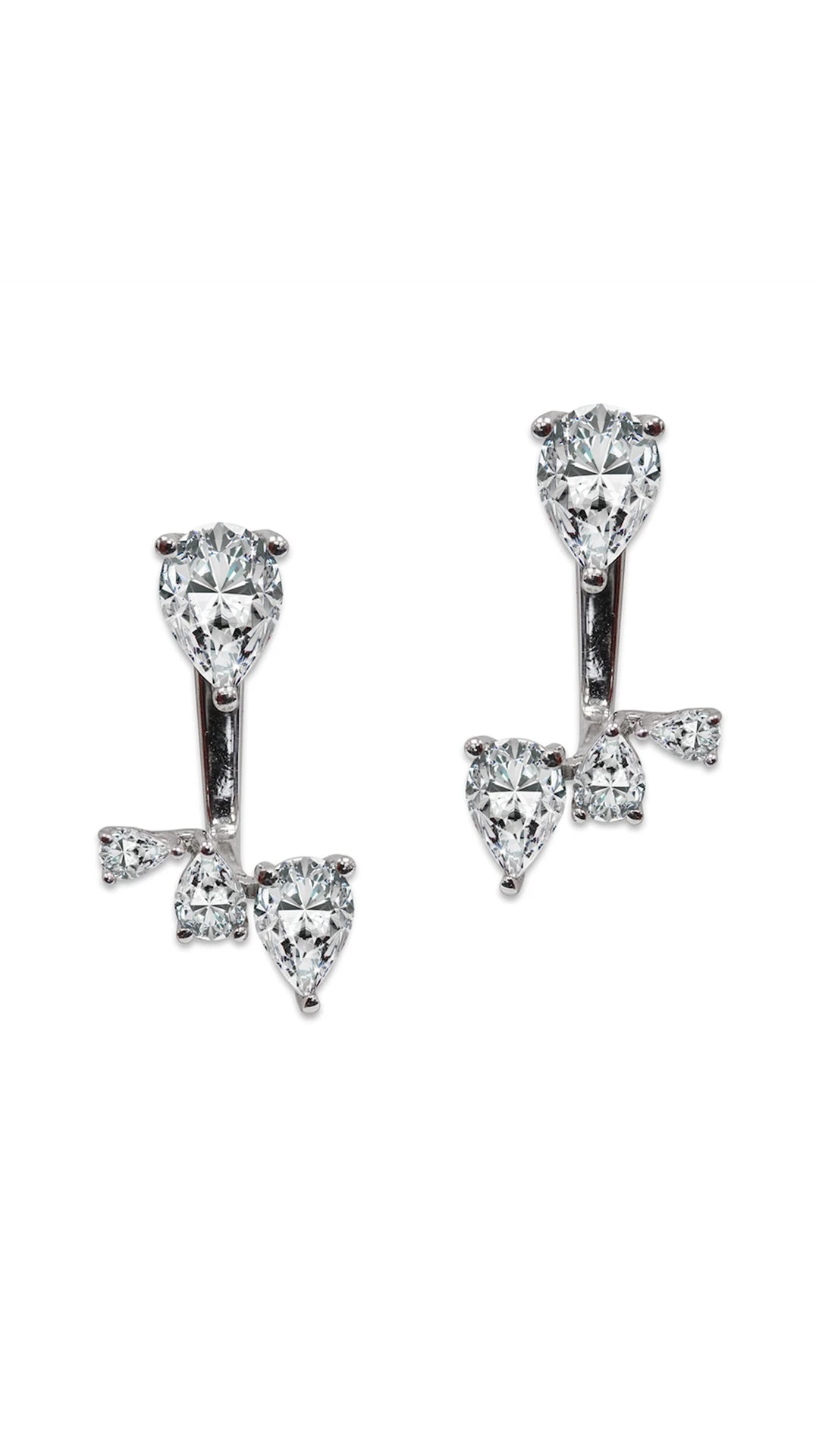 These ear jackets with white gold-plated sterling silver Ear Jackets feature exquisitely cut and polished pear stones and are designed to be worn as a stud or dropped as a small earring.