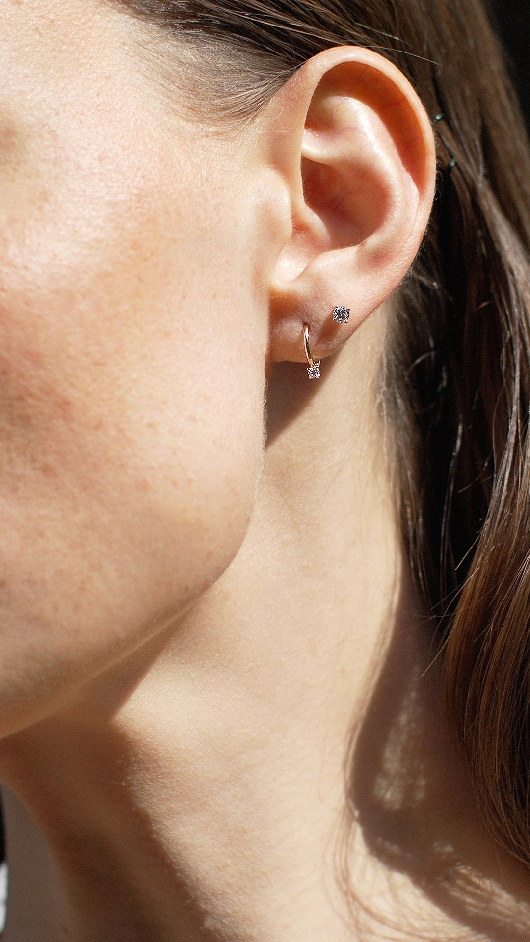 Good things come in tiny packages. The Niko huggie is handcrafted in 9K yellow gold and features a single micro diamond for a hint of sparkle. We love this huggie worn as a second piercing and stacked with other Gentle Diamonds pieces. Discreet, beautiful and sustainably sourced.