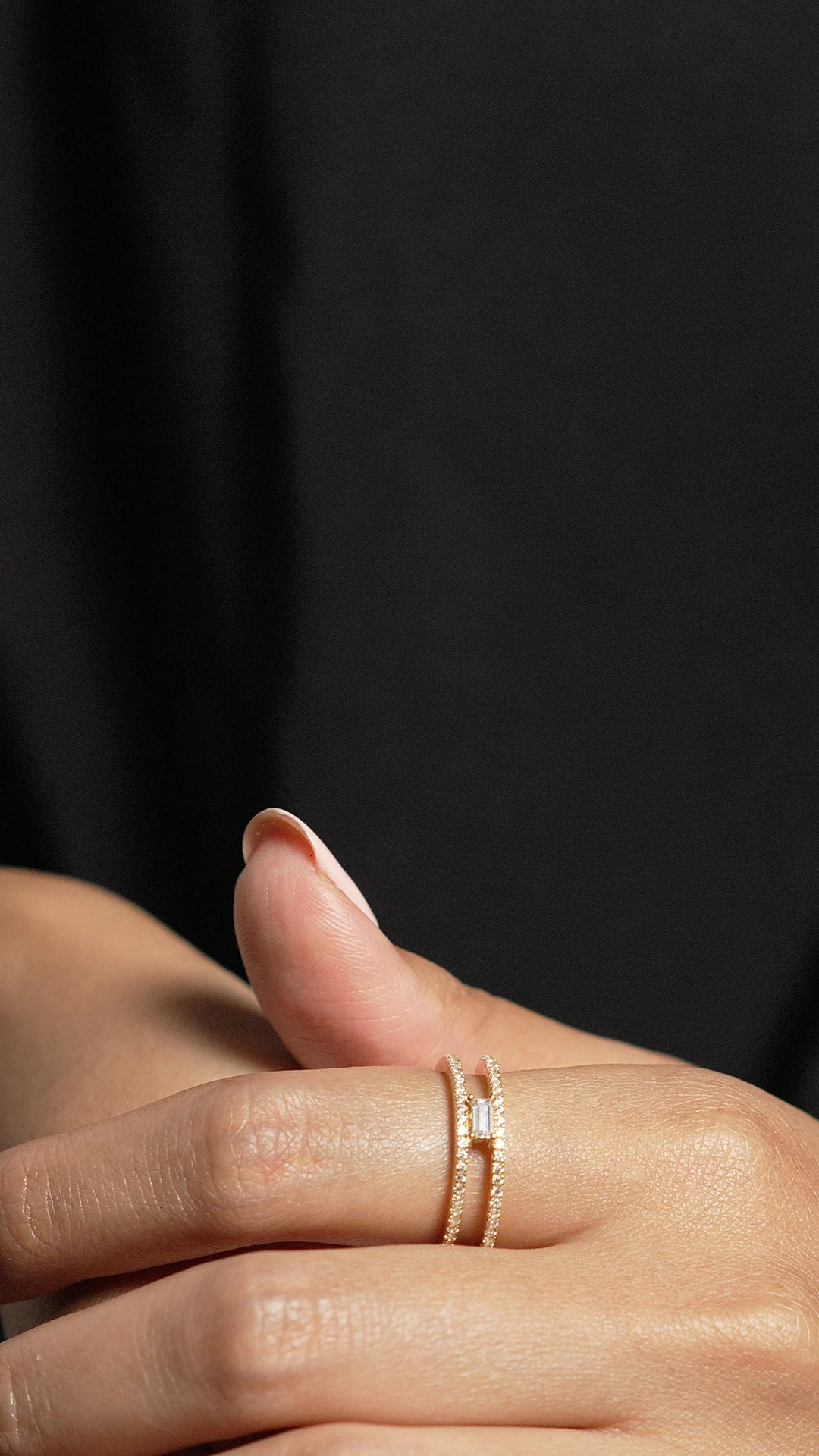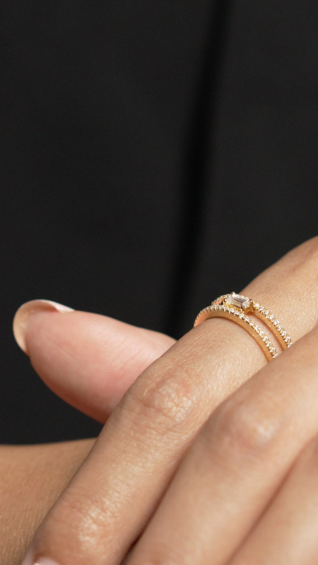 This cute little every day is embellished with the baguette cut centre stone and micro setting details. Wear it alone to elevate the everyday. It is easily paired with the other pieces from the collection.