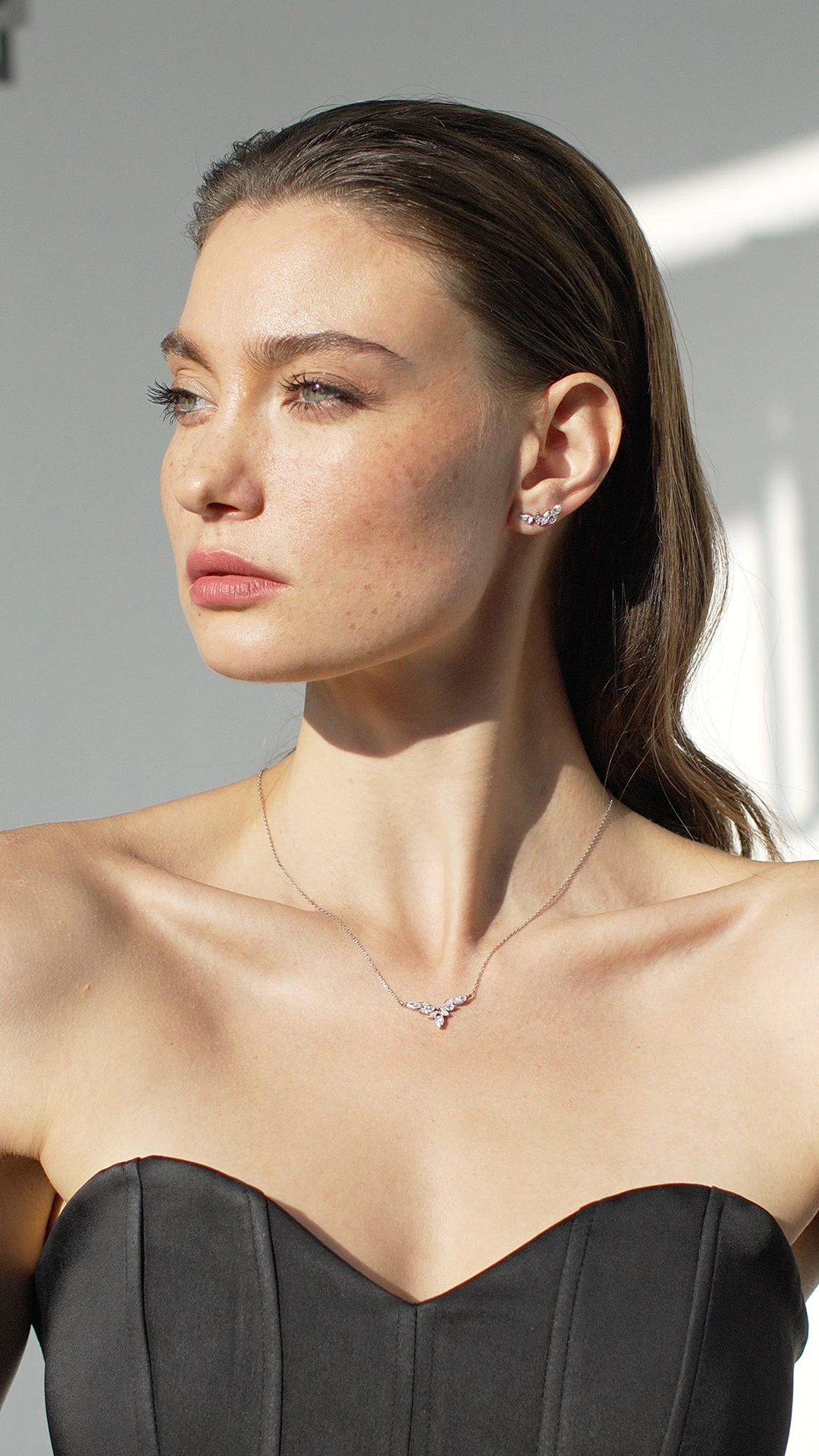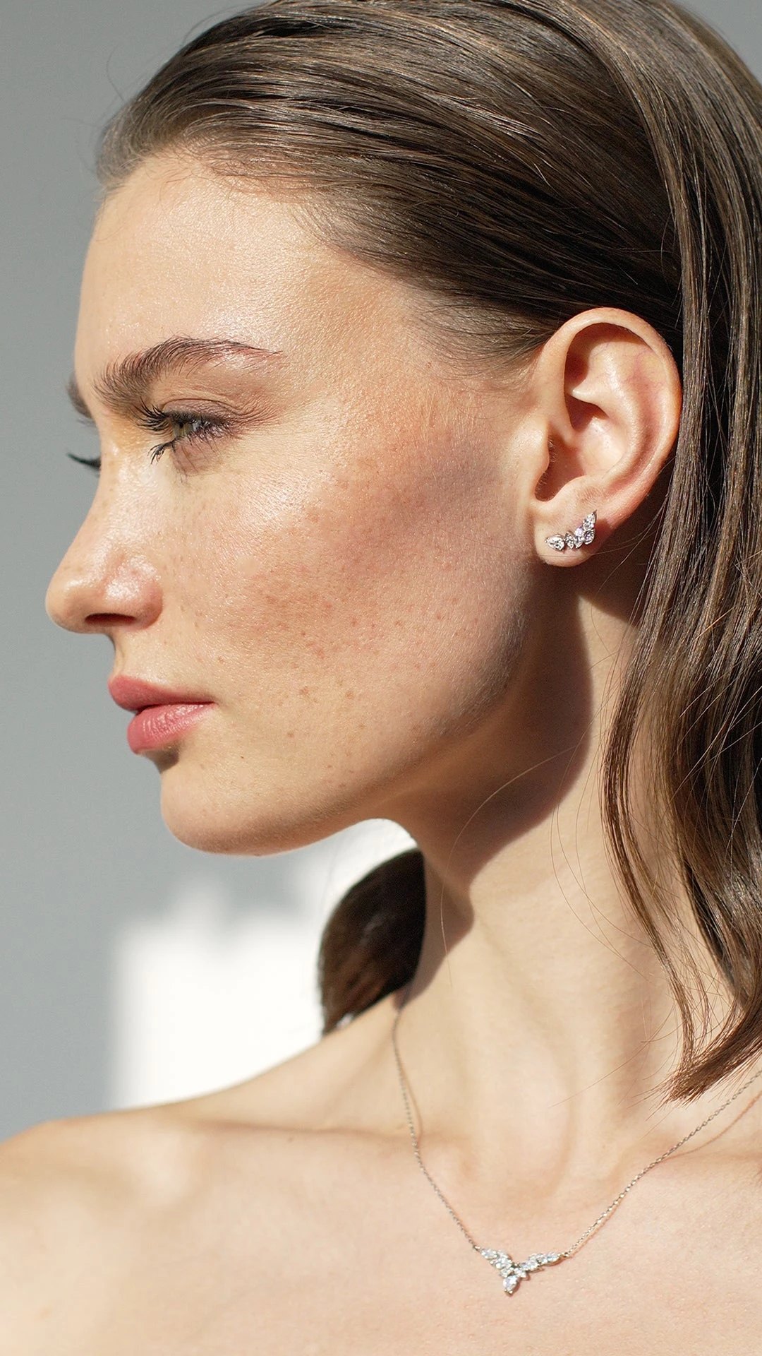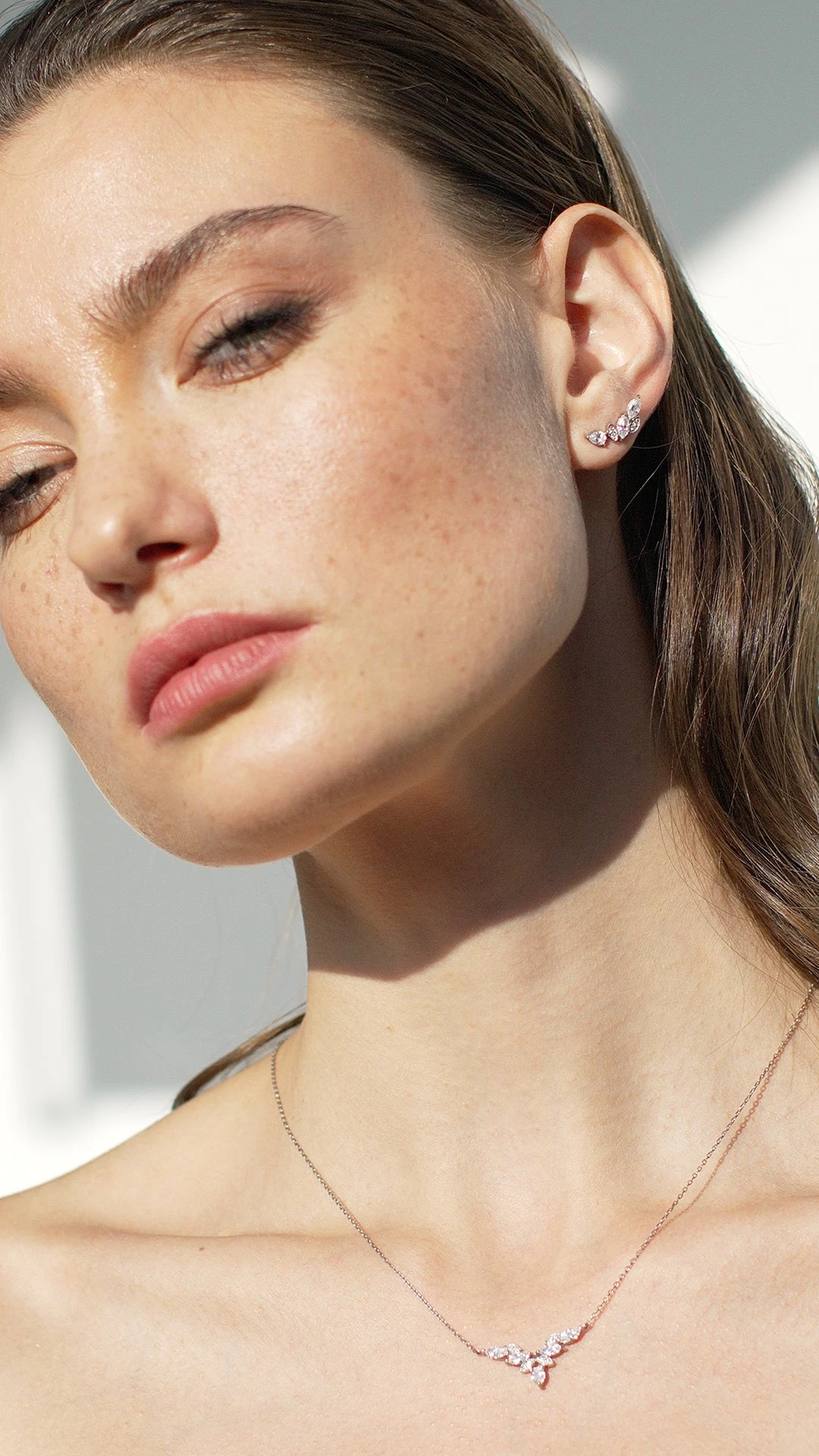 The Petal necklace features beautiful marquise and pear GENTLE DIAMONDS. All set in 9K white gold. This very flattering necklace, with an adjustable length chain of up to 45cm, can be paired with the Petal ring and Petunia earrings to complete your look.