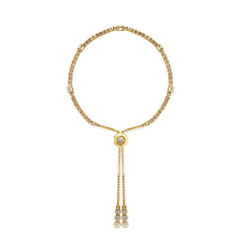 CARAT’s fresh new take on bracelets. This piece evokes classic modernity, It features Round Brilliant cut stones trimmed with our signature slider for a comfortable fit. Layer it with other pieces from the collection for a personal look.