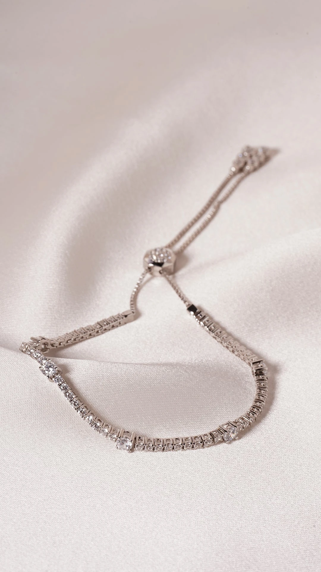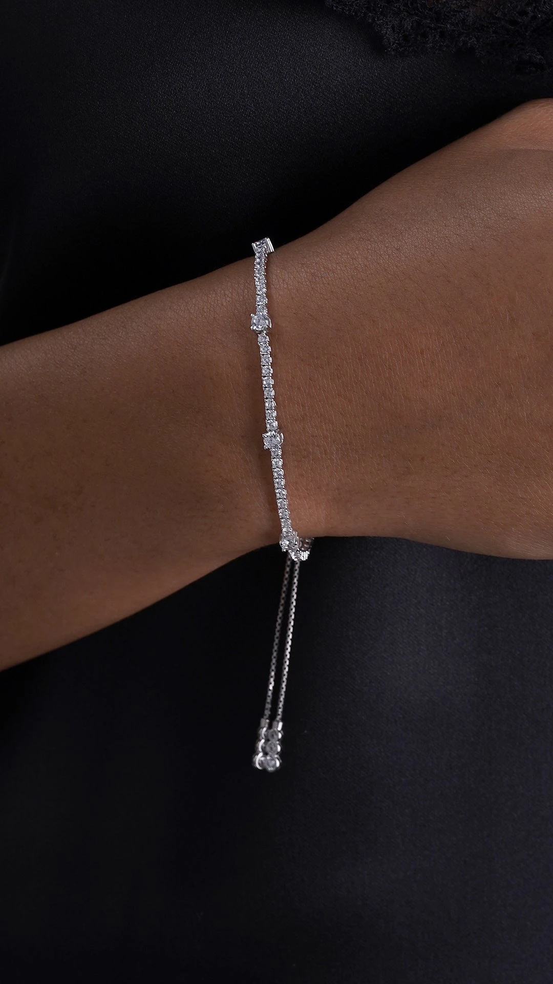 A true jewellery box staple, the Phoebe Bracelet is set in sterling silver and features a row of dazzling brilliant-cut stones. It is finished with our signature CARAT* slider for a truly comfortable fit.