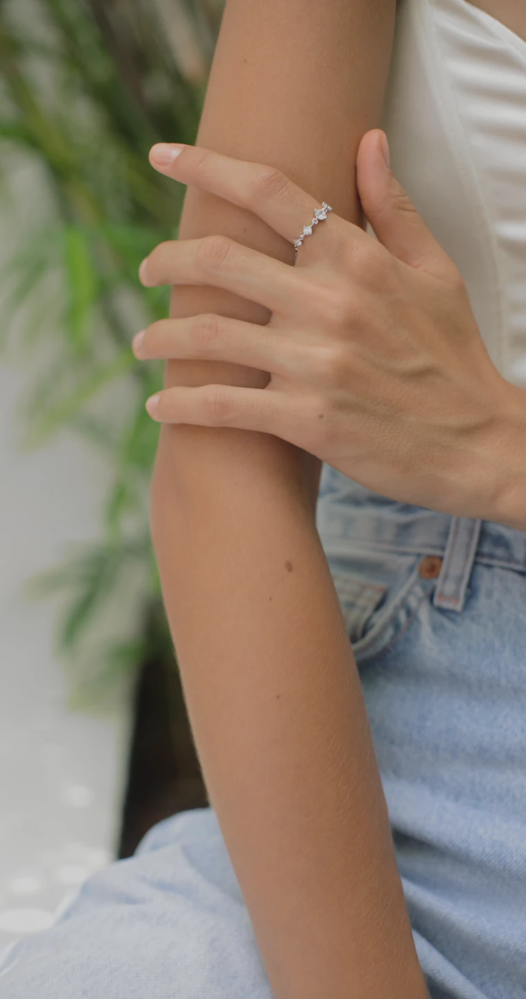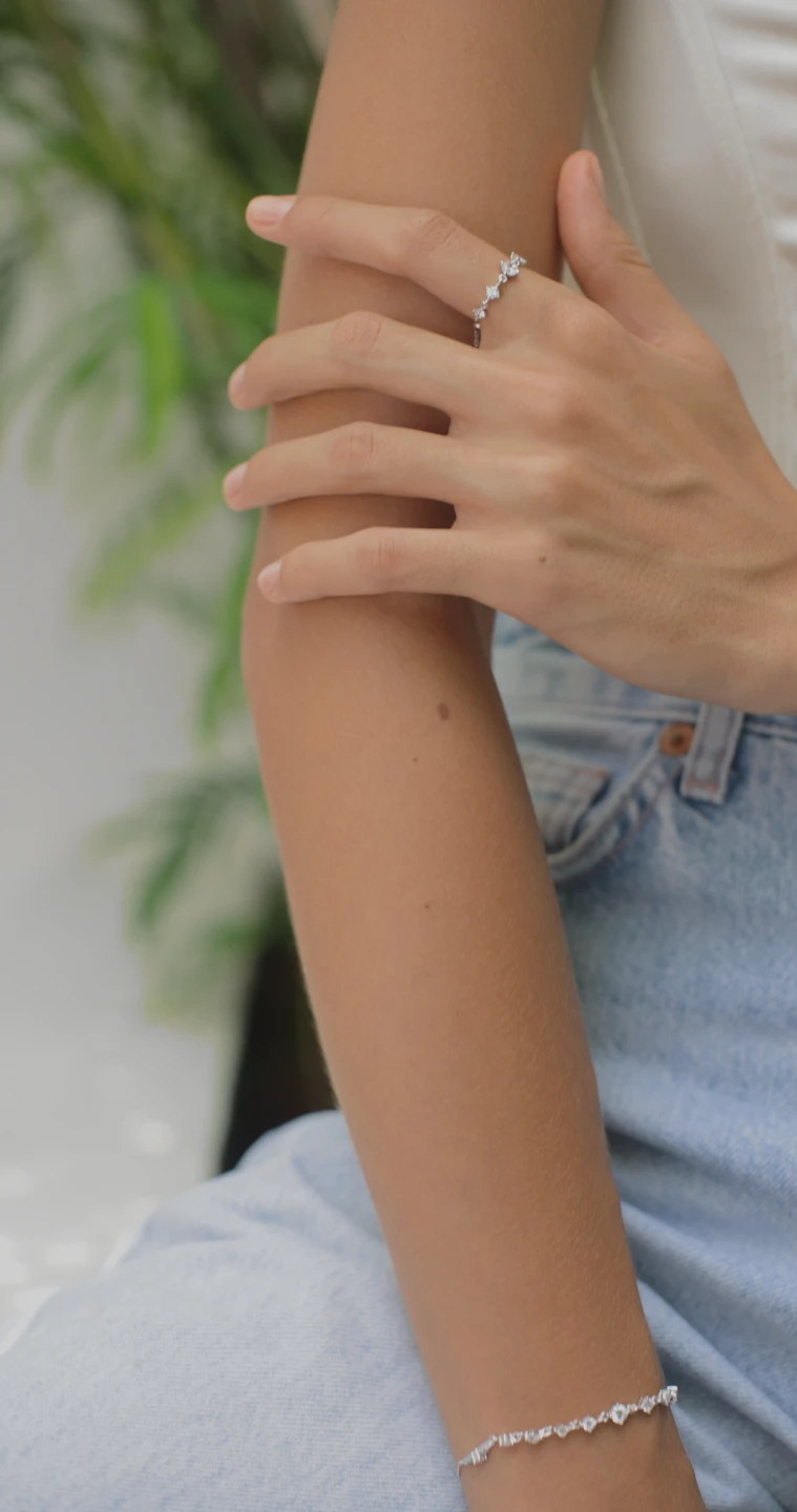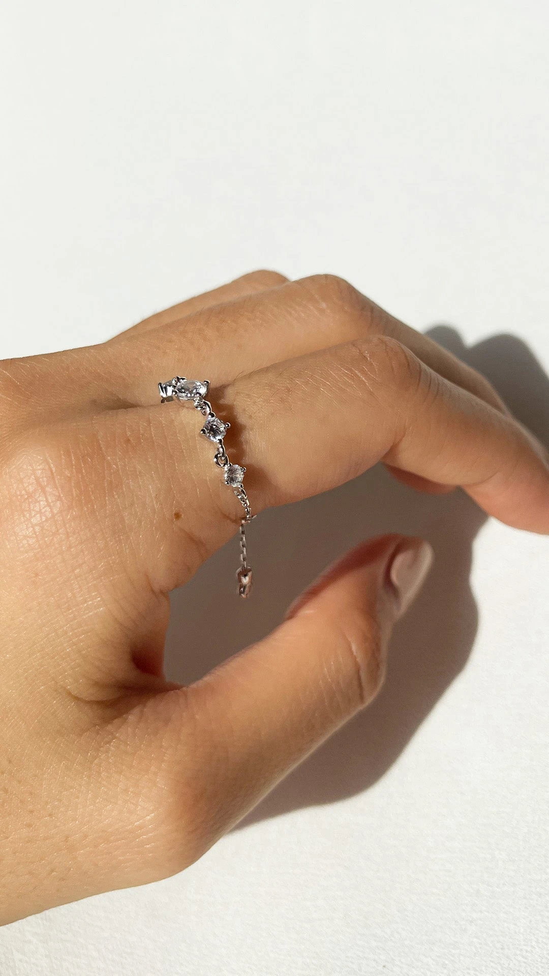The Phoenix ring is a beautiful everyday ring, a delicate chain dotted with round brilliant stones secured with an adjustable slider so you can wear it on any finger you wish. Pair with the Phoenix bracelet or earrings for a more glamorous look.