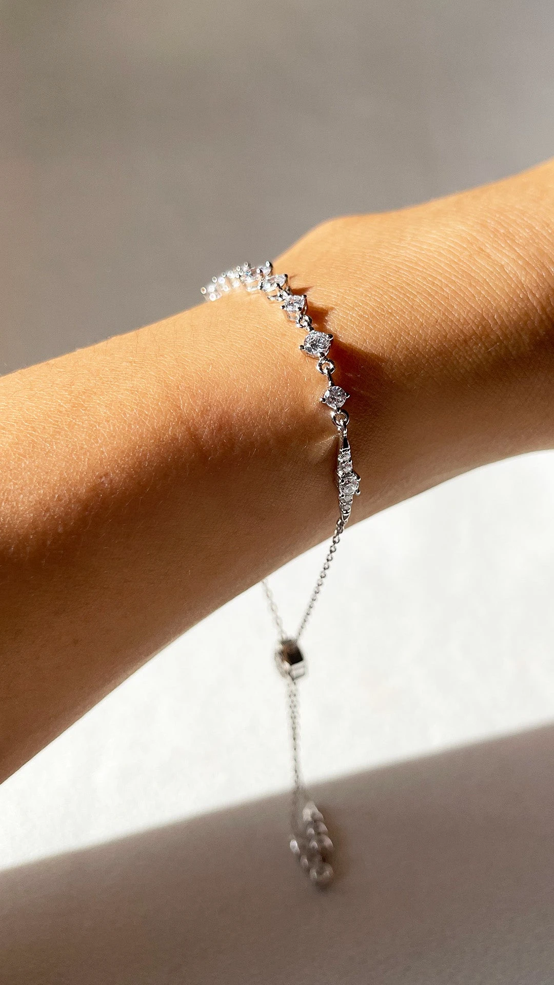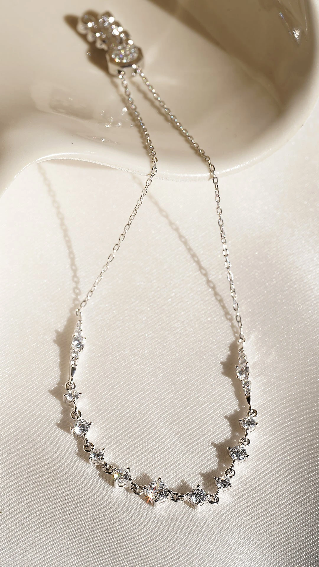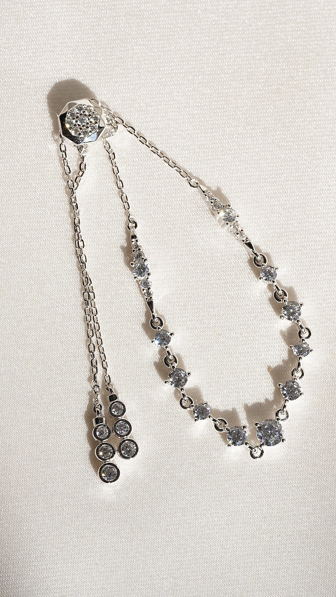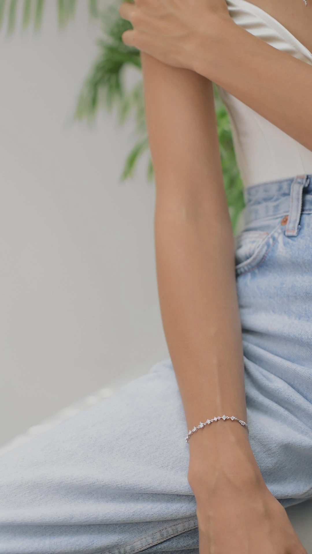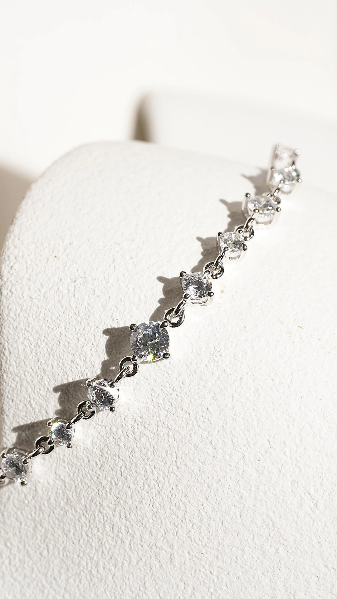 Varying sized brilliant-cut rounds dance along a handmade, fully articulated chain.