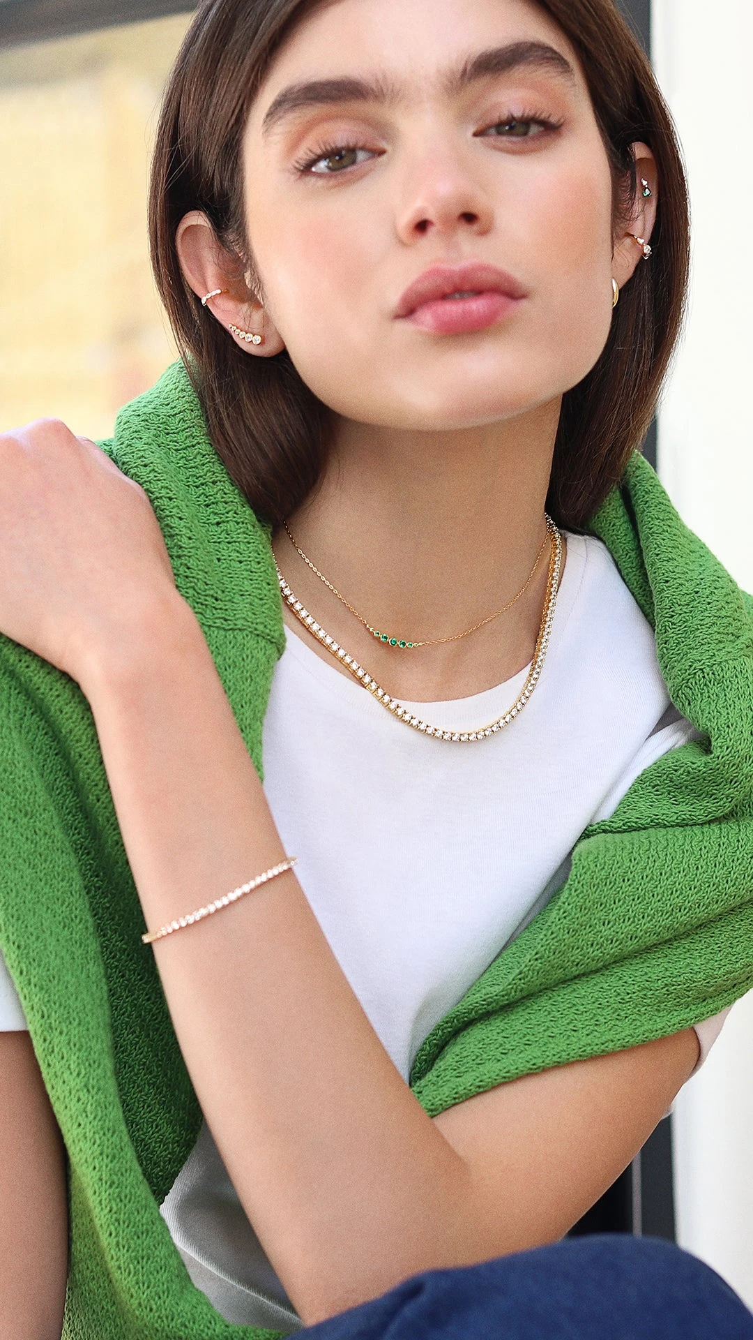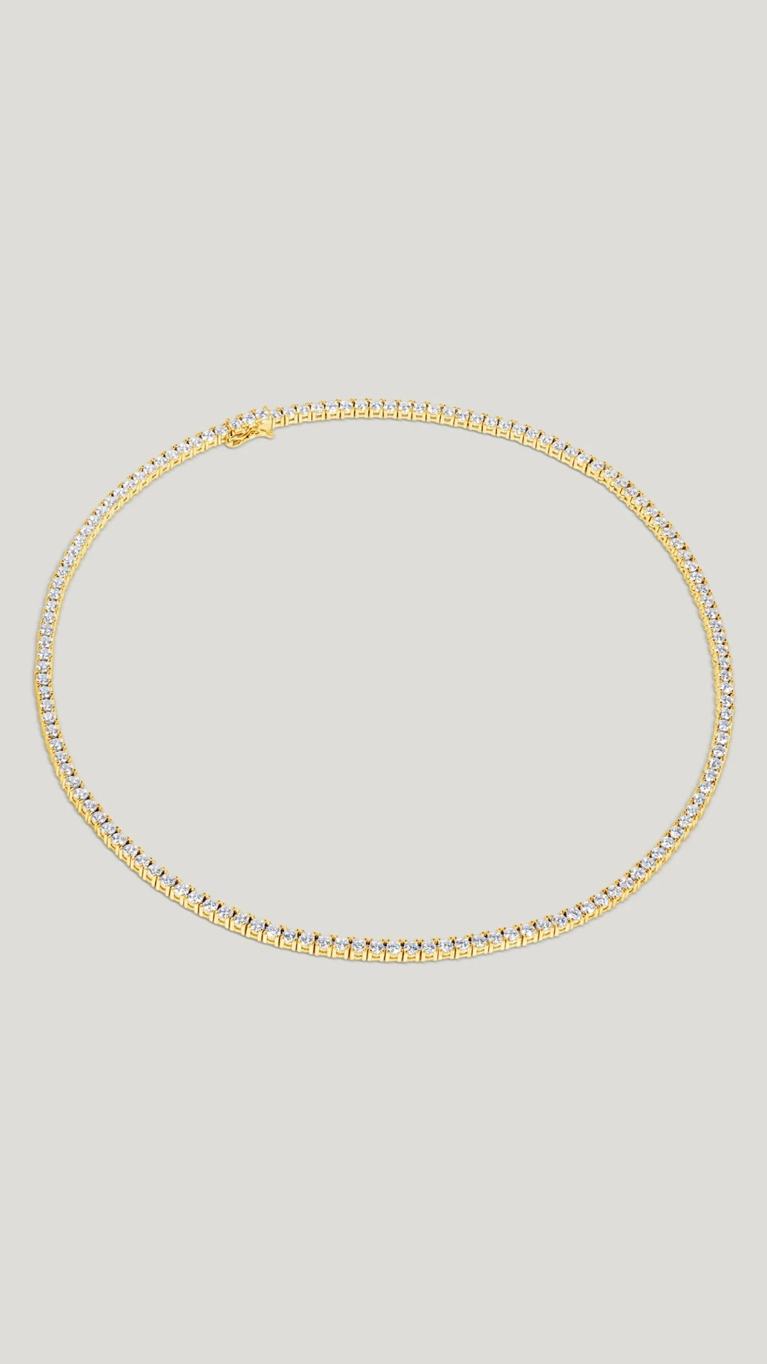 This classic line necklace is to reach for any occasion. Elegant round brilliant stones set to shine in yellow gold vermeil, this necklace perfectly complements your daily and refined edits. Dress it up with your LBD or dress it down with denim and a t-shirt.