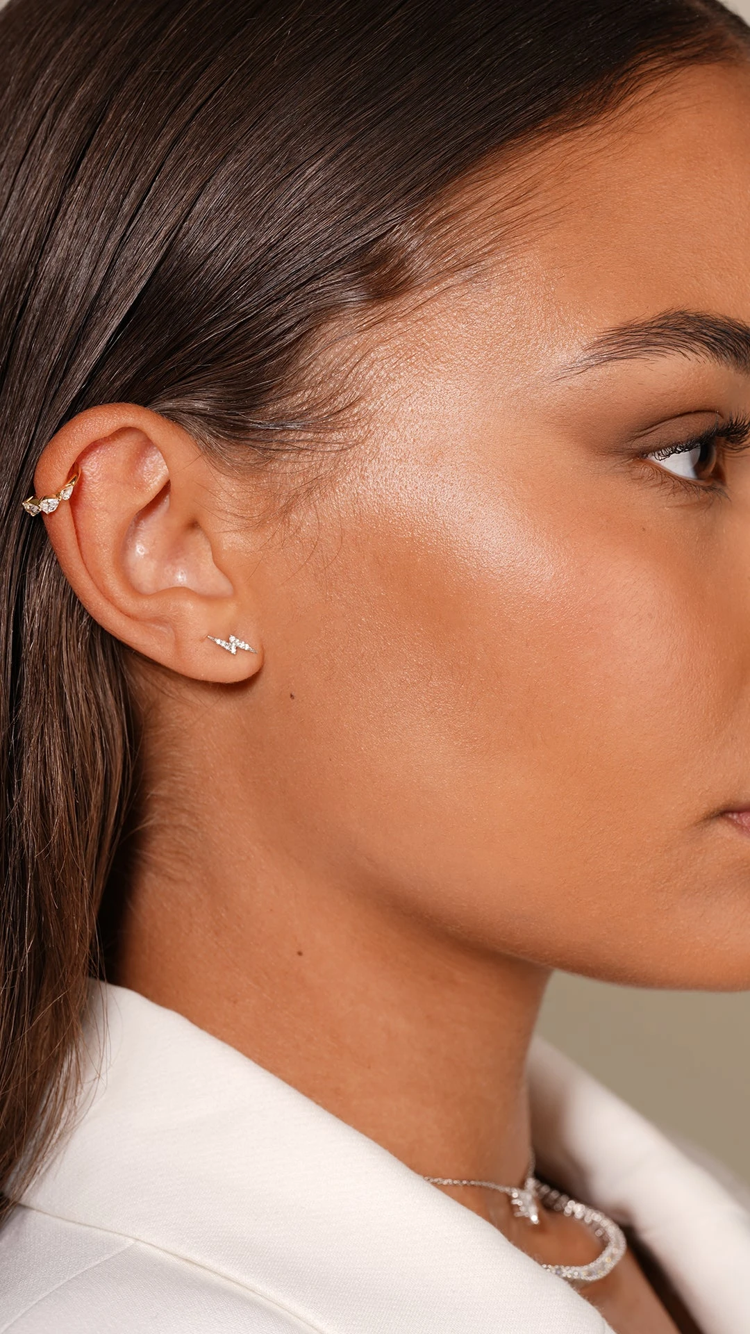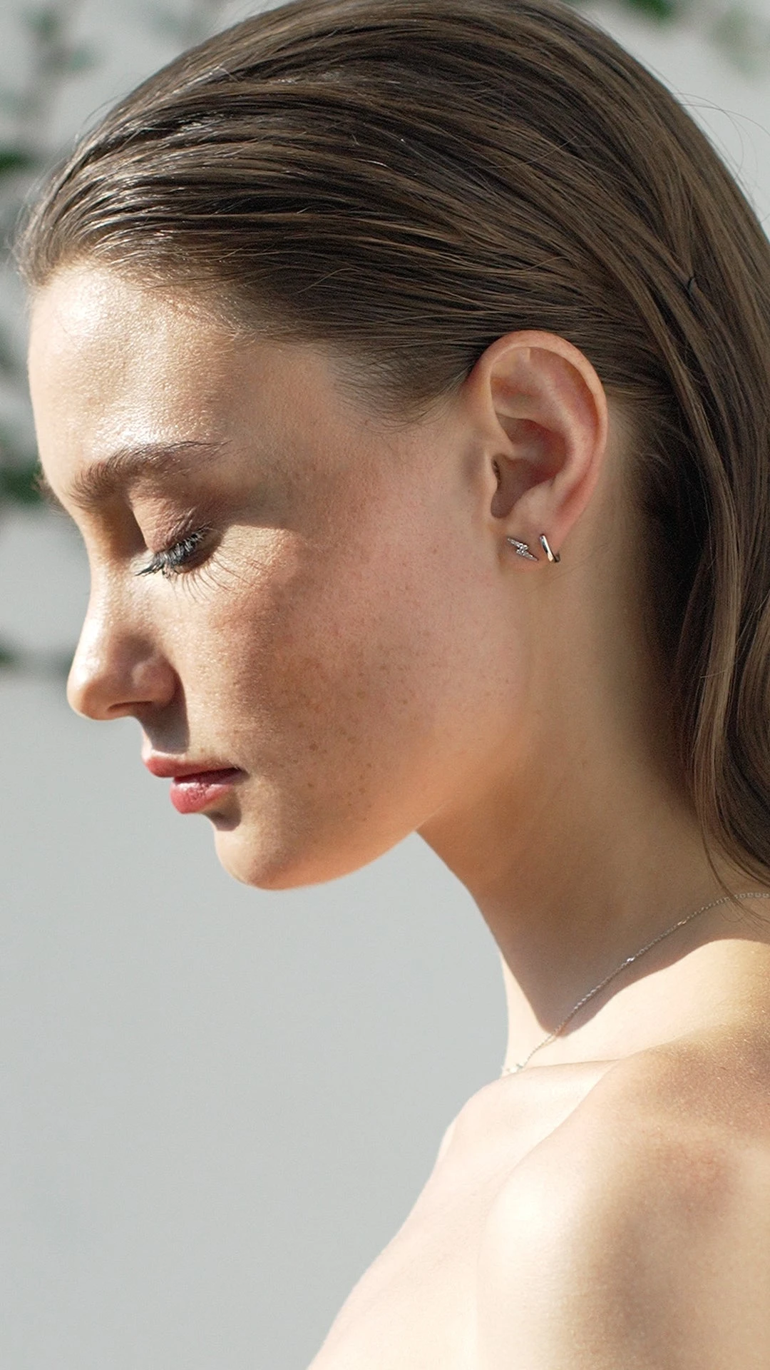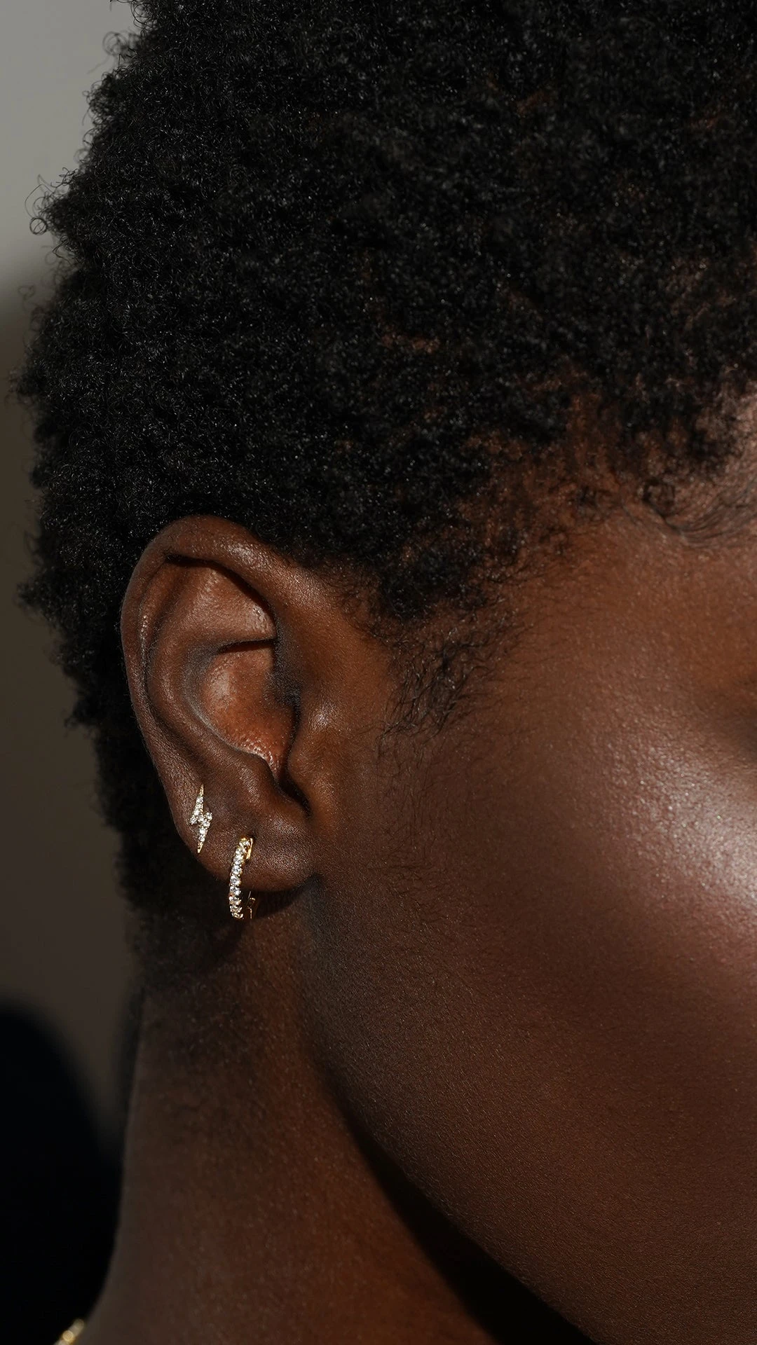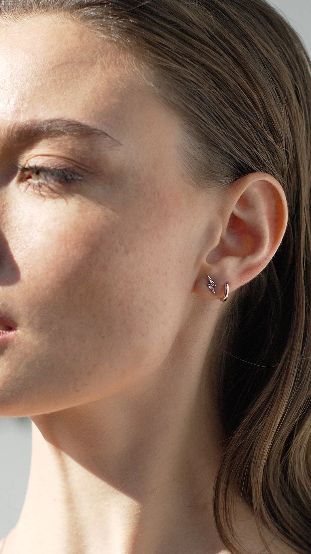 Good things come in tiny packages. A miniature-sized stud earring handcrafted in 9K White Gold GENTLE DIAMONDS. A tiny, delicate, lightning bolt-shaped stud for your second or third-lobe piercing is essential to your ear stack. Create your own earring combination and match it with other tiny studs on your lobes.