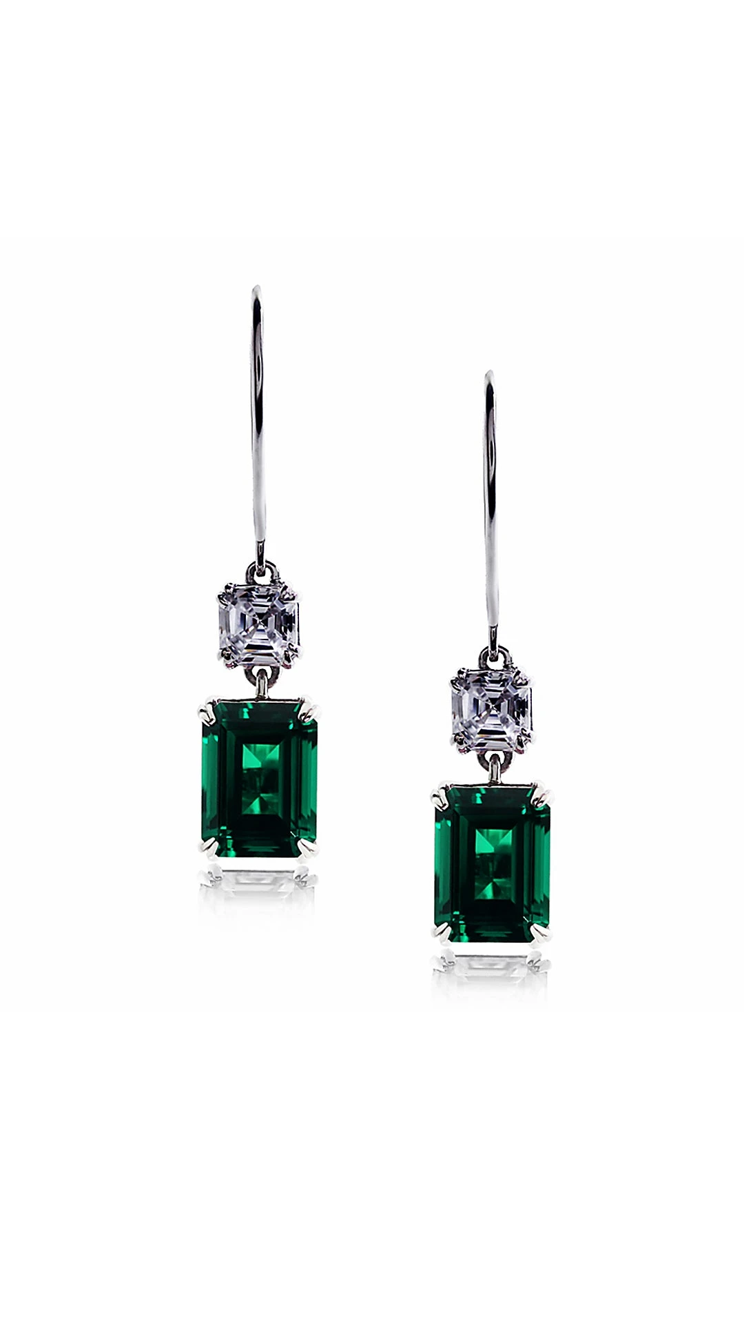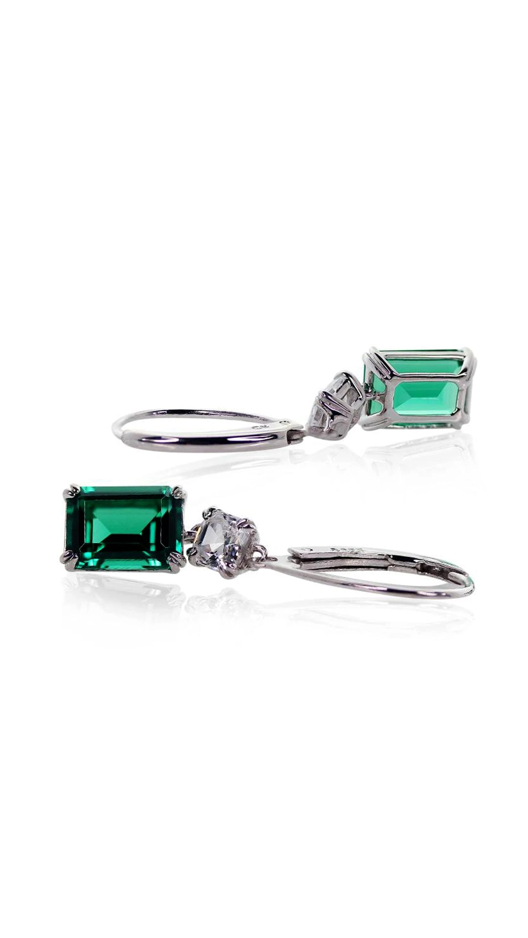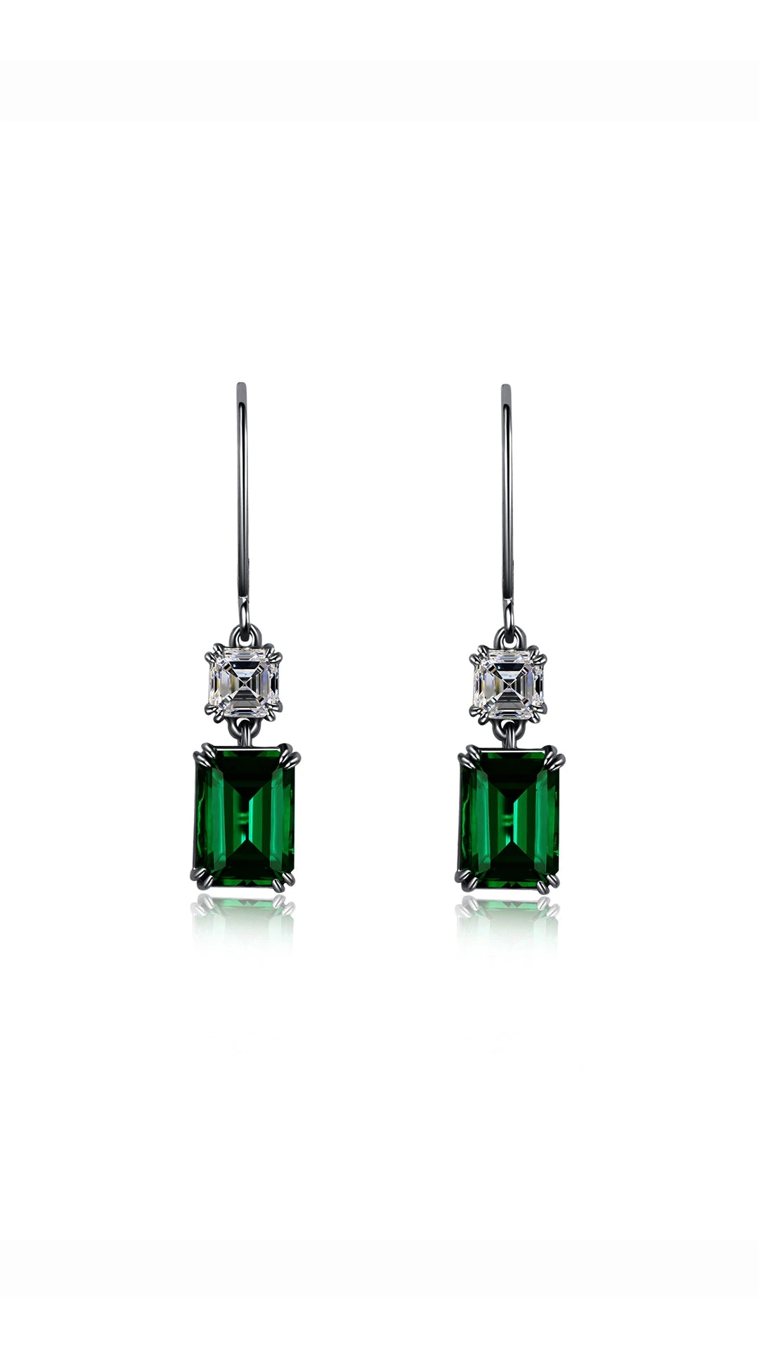 This classic pair features a 1.5-carat equivalent Emerald cut in emerald green keystone on our secure leaver system. Wear it as your everyday staple with a total drop of 3 cm when worn.