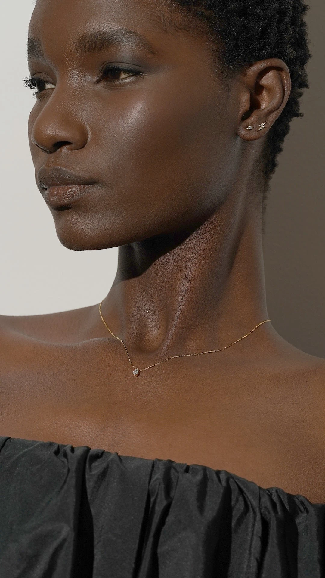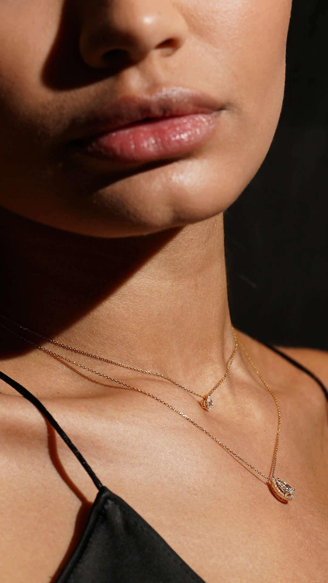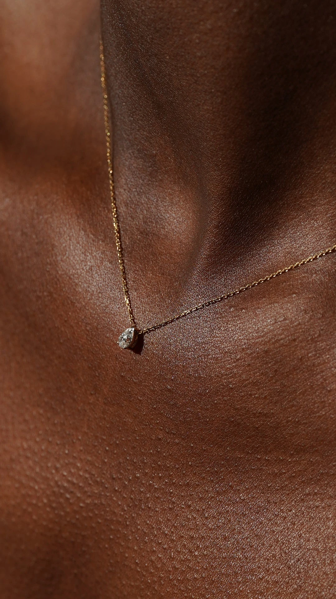 The Simone necklace features a glittering pear shaped diamond suspended on a delicate polished 18K yellow gold chain, adjustable to up to 45cm. Beautiful worn solo or layered with other Gentle Diamonds pendants.