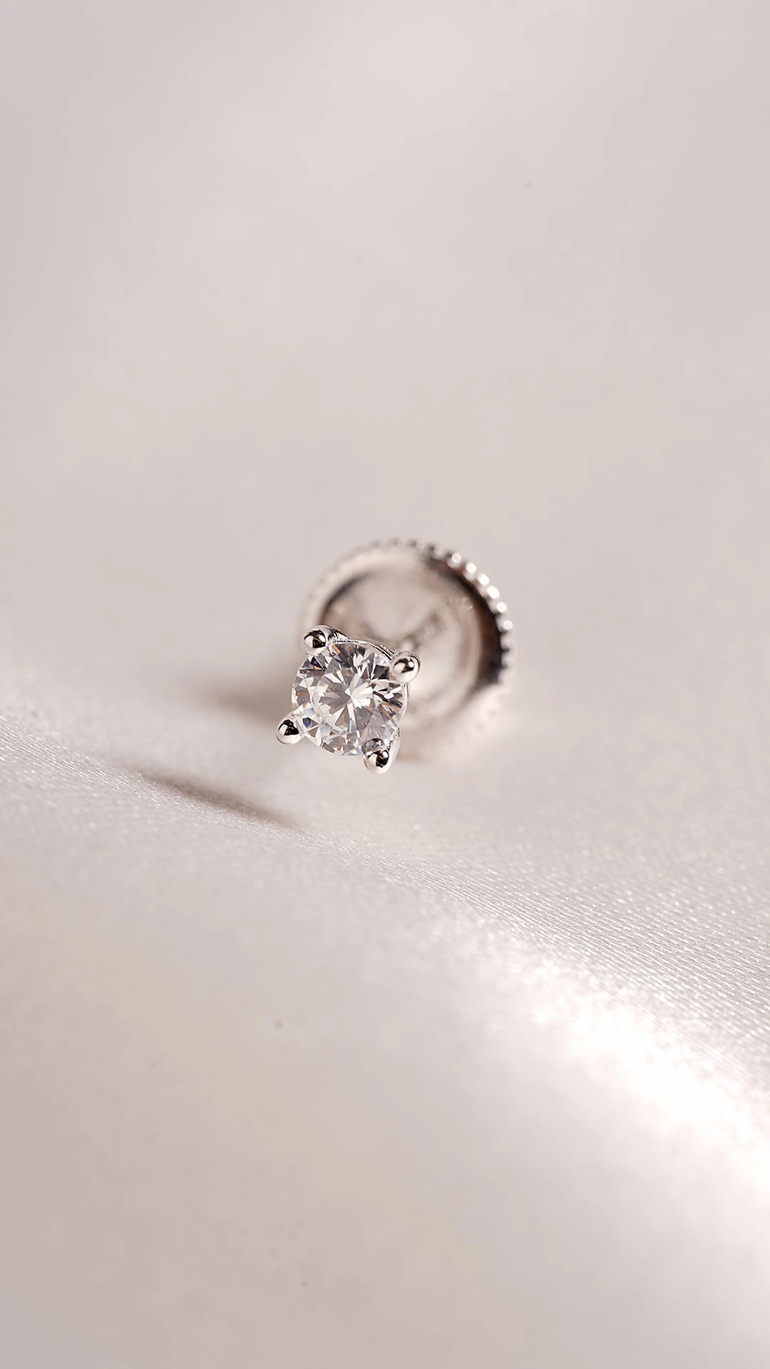 Sterling Silver | White Gold Plated | Single Stud Earring | 0.25 eq. ct
