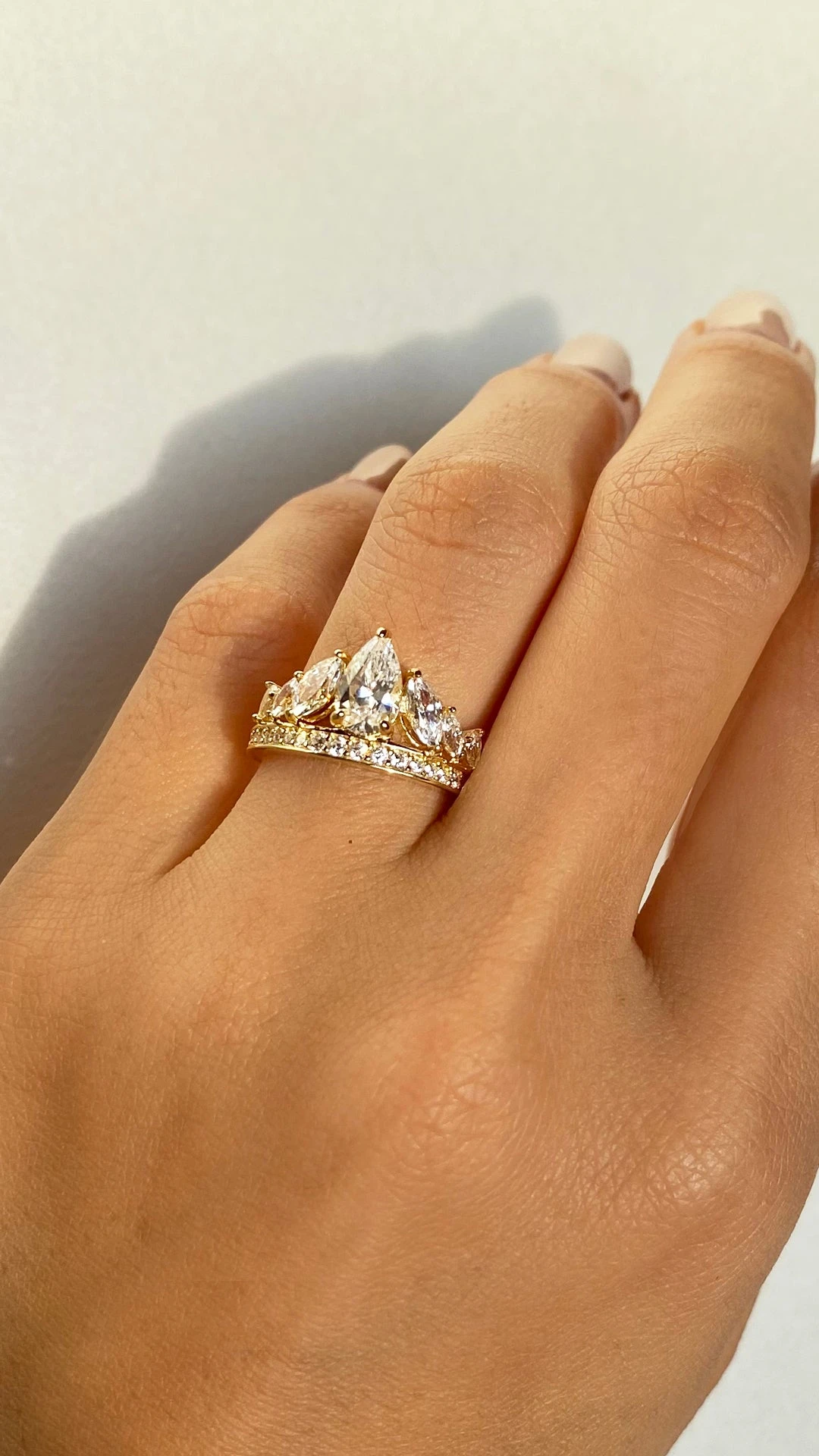 This ring features our intricately cut and polished Pear and Marquise stones set on top of a micro-set band and crafted in Sterling Silver. The design creates the appearance of a crown, offering the perfect mix of modern and vintage allure.