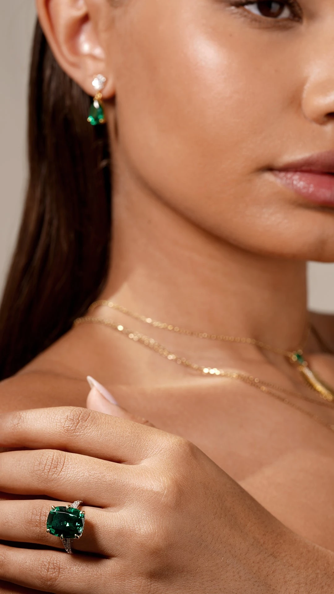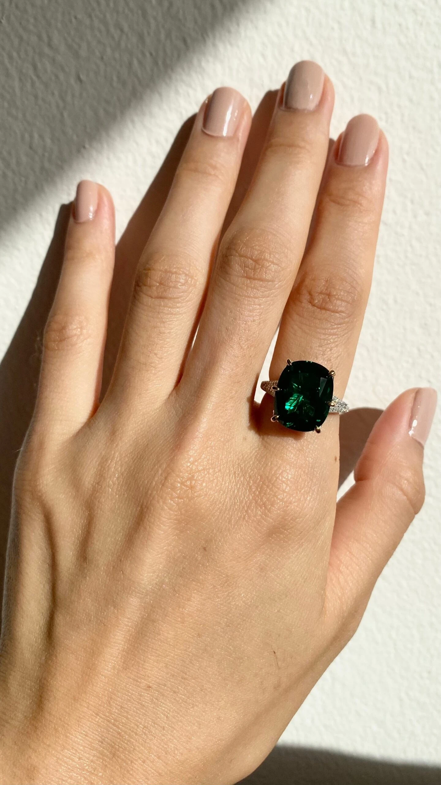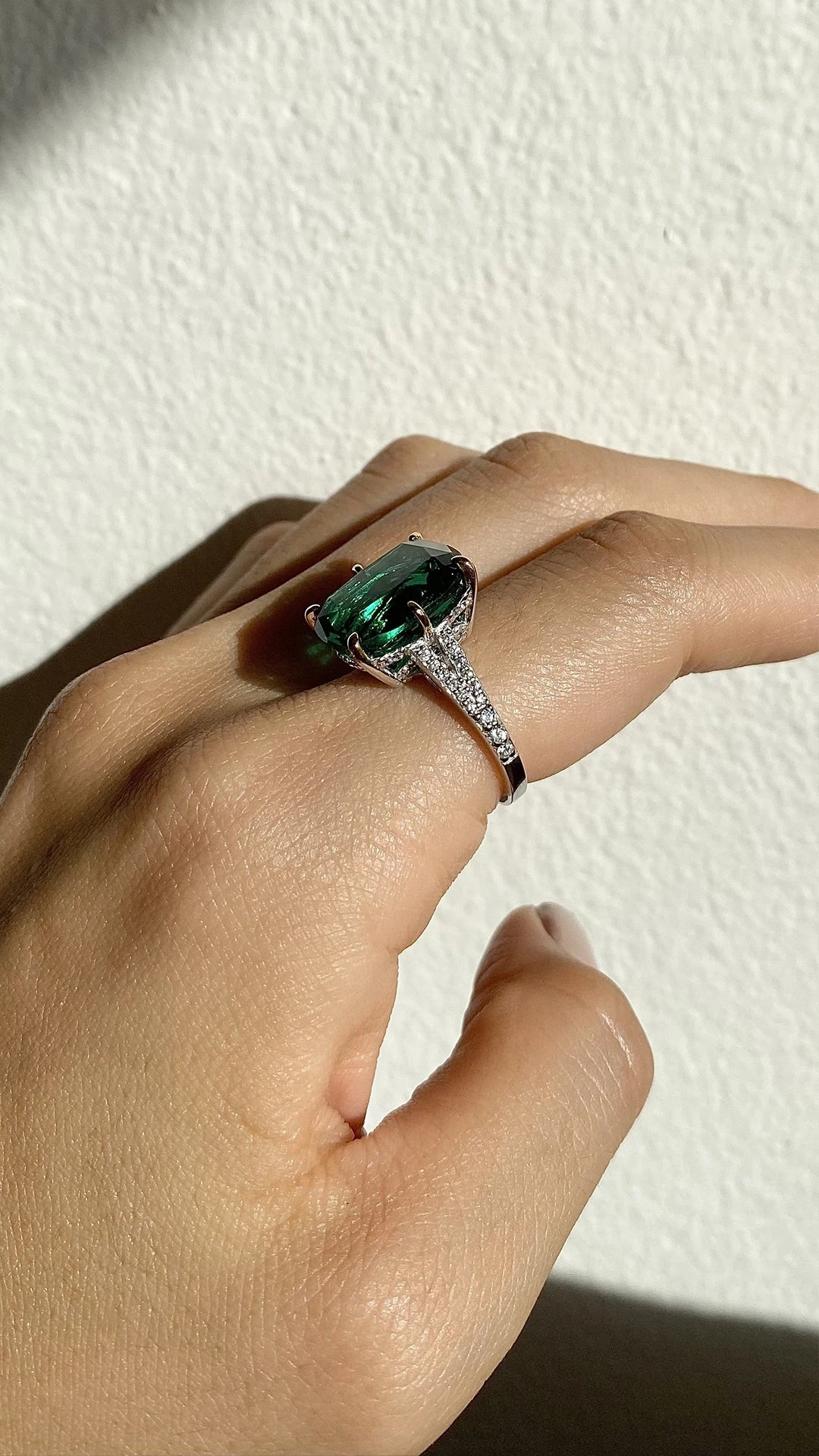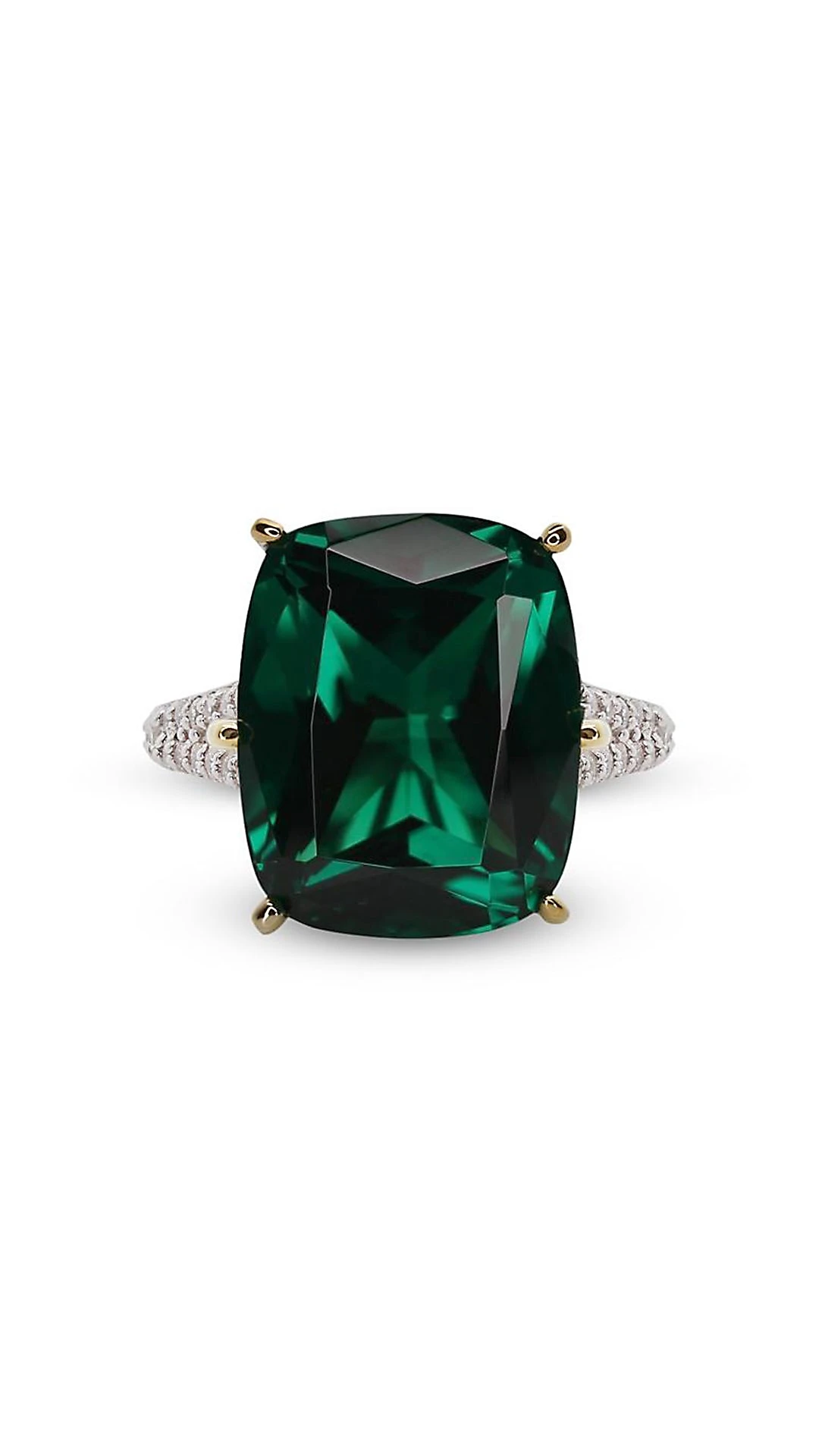Made with the confident woman in mind, this ring will get noticed with its vibrant green emerald hue and pave double shank. Wear the Tatum as a solo piece with simple studs.