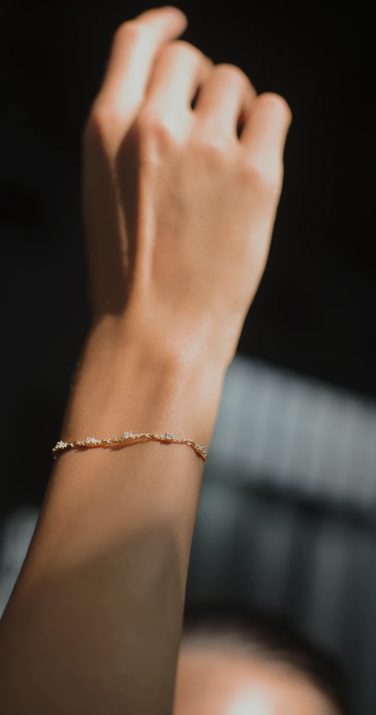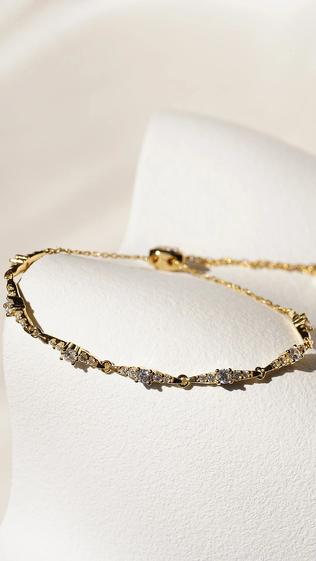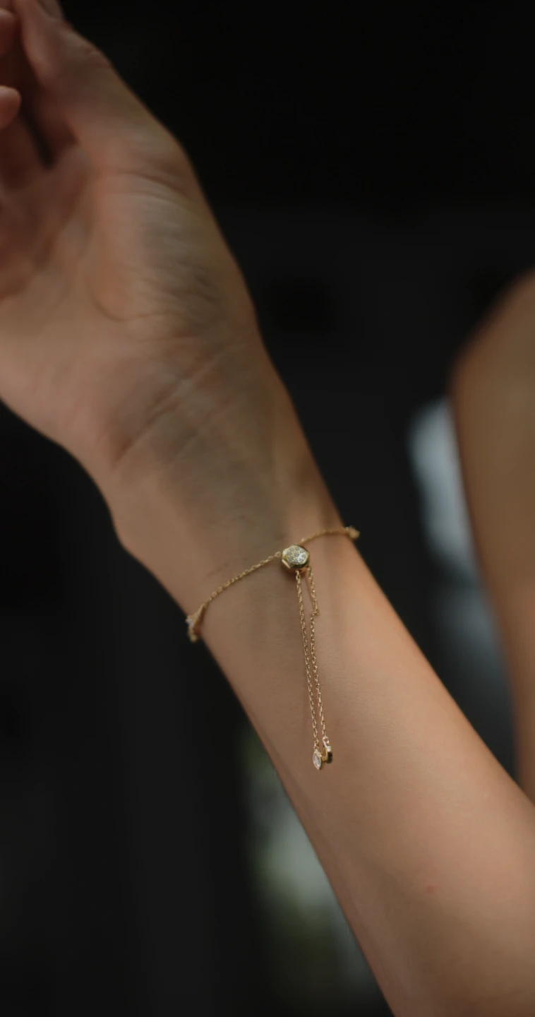 A simple addition to our staple Stella Collection. An understated star shard motif on our signature slider with bezel marquis strand ends. An easy daily staple.