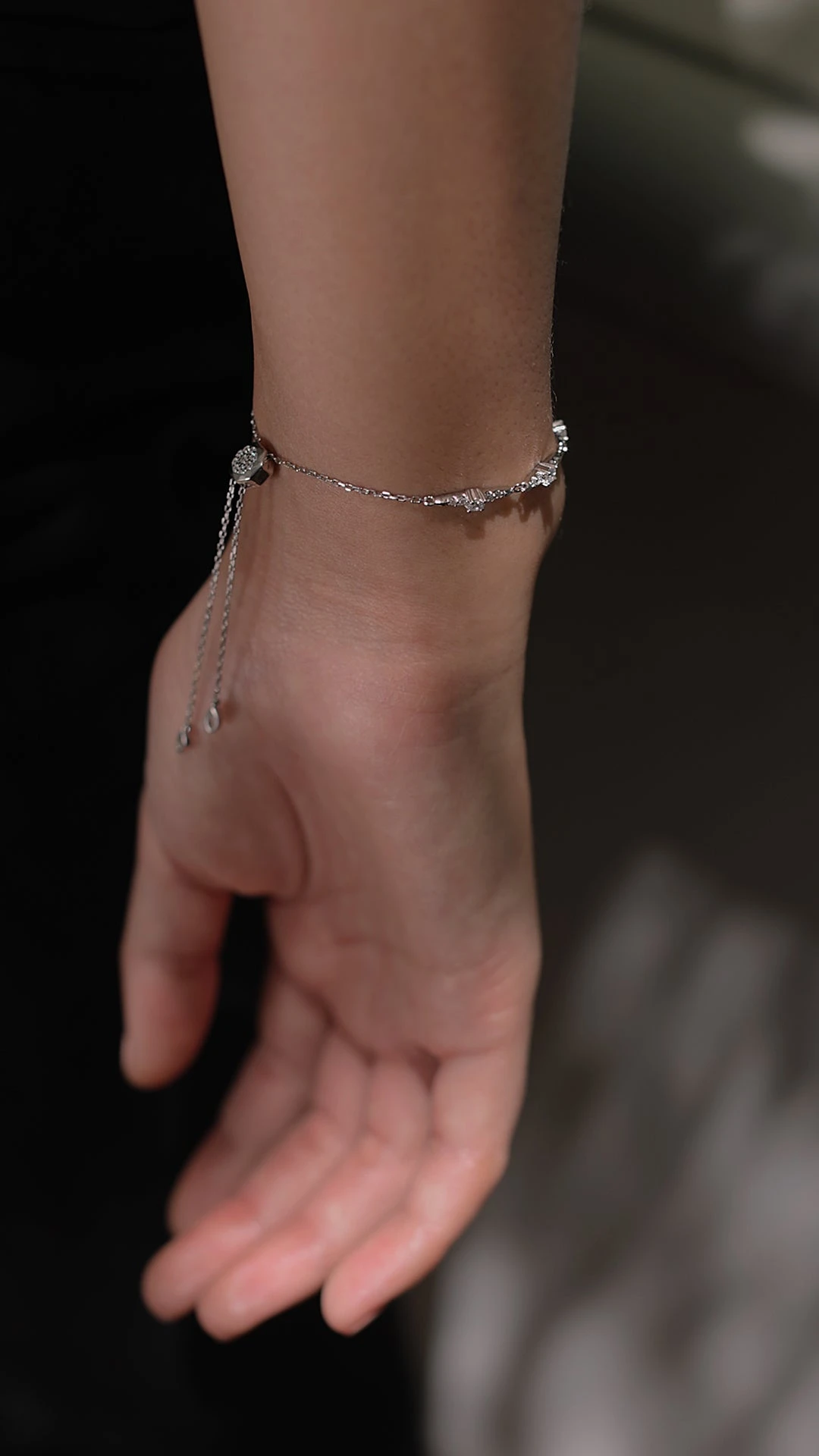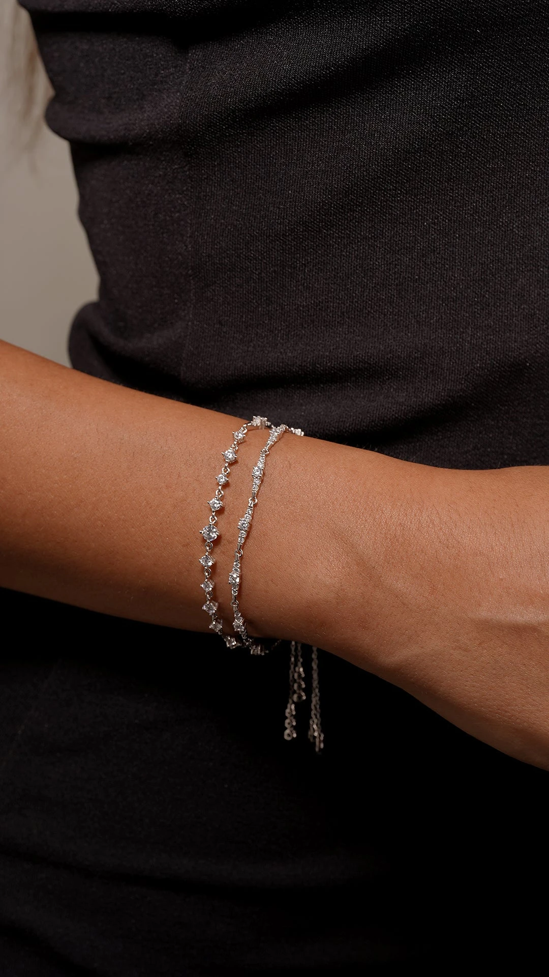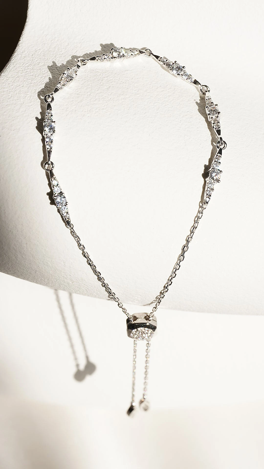 A simple addition to our staple Stella Collection. An understated star shard motif on our signature slider with bezel marquis strand ends. An easy and elegant daily staple.