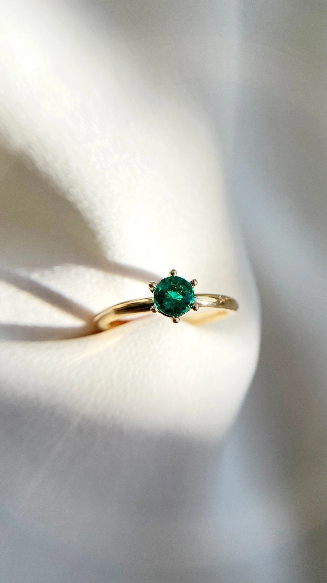 A classic solitaire ring showcasing a beautiful lab-grown 0.50ct Colombian green emerald. Made of the same properties as mined emerald, its rich hue flatters every skin tone. The Trudie ring is set in polished 18K yellow gold in a secure 6-prong setting with a circular shank for a comfortable fit. An alluring ring to add to your staple jewellery collection.
