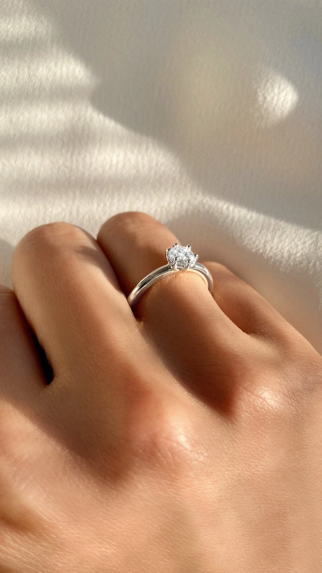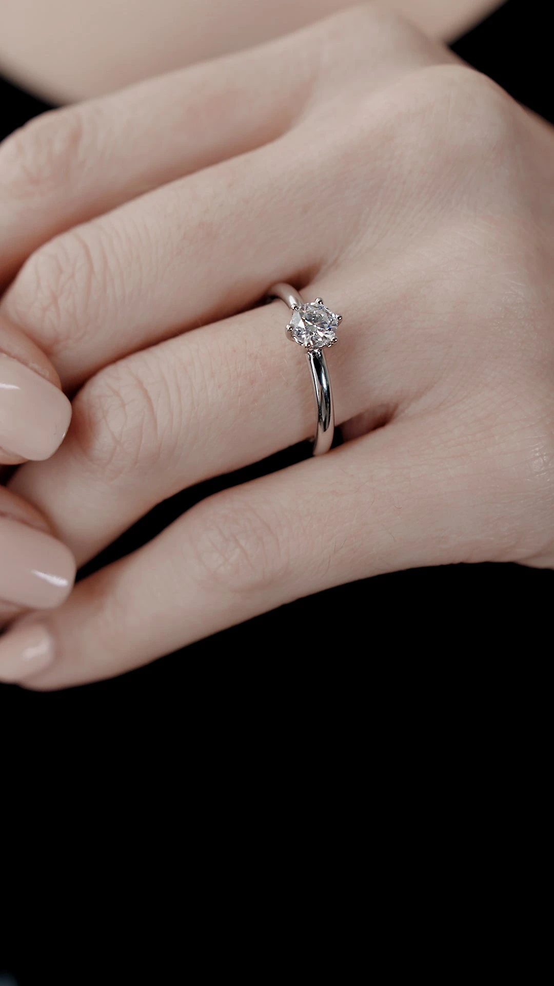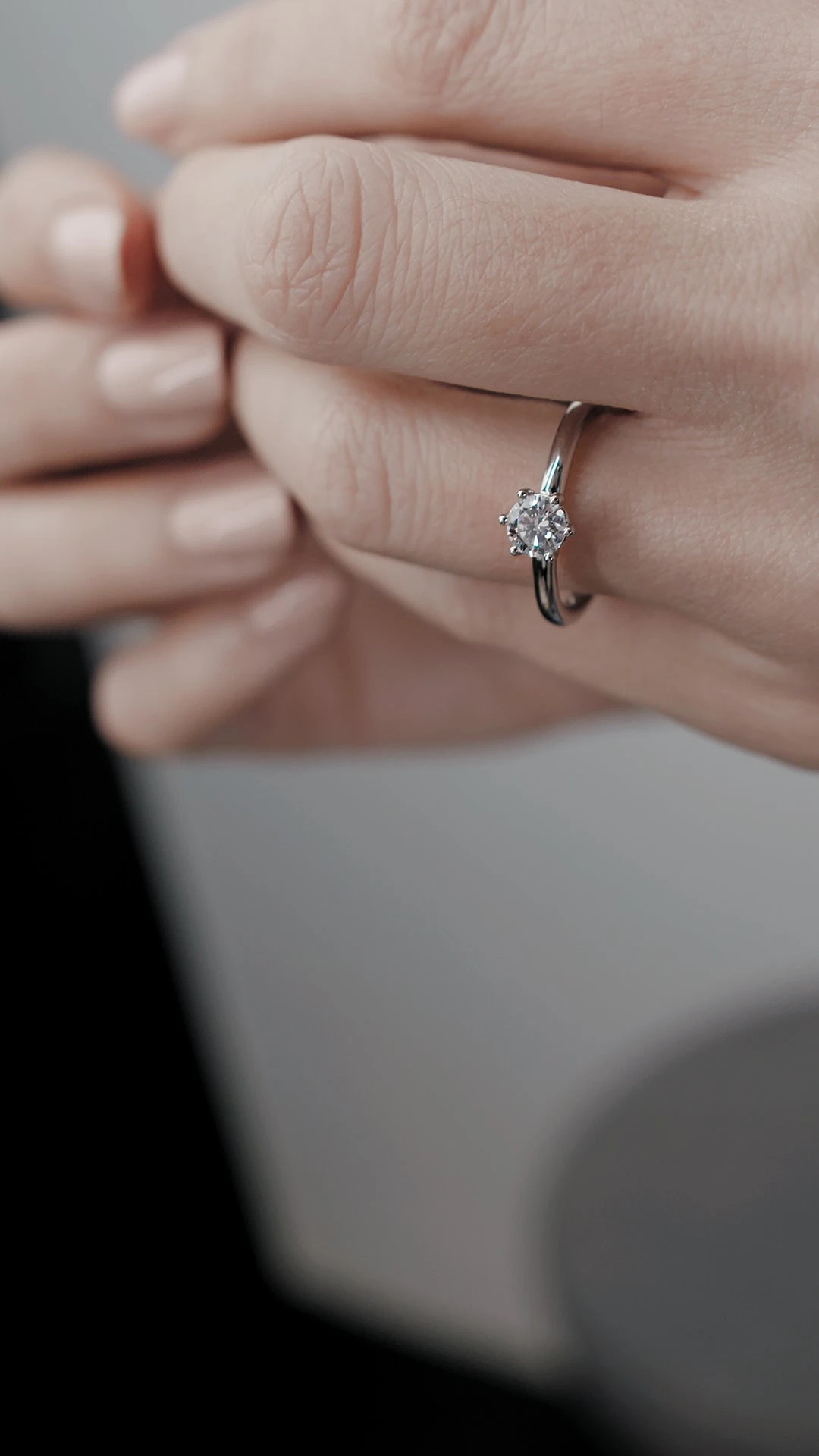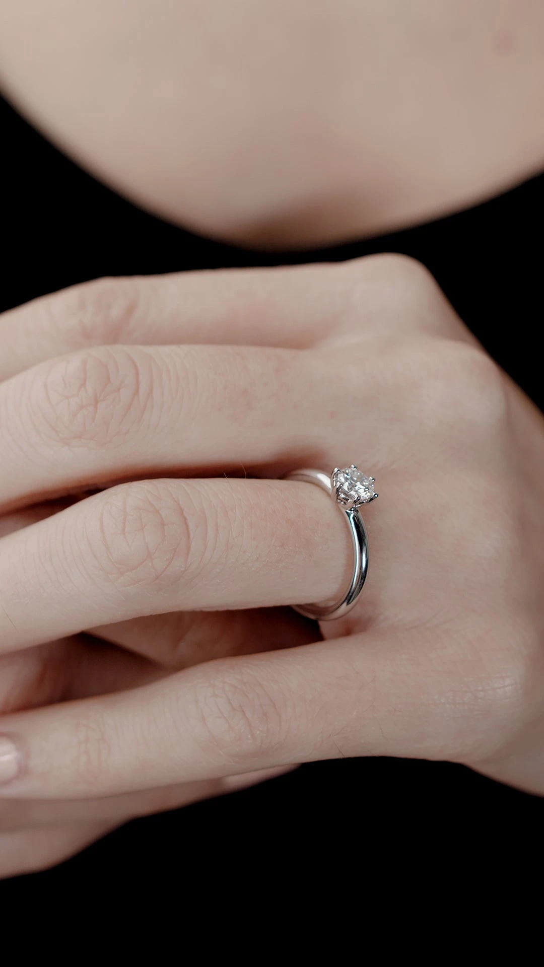 A classic solitaire ring showcasing a beautiful lab-grown GENTLE DIAMOND. The Trudie ring is set in polished 18K White gold in a secure 6-prong setting with a circular shank for a comfortable fit. An alluring ring to add to your staple jewellery collection.