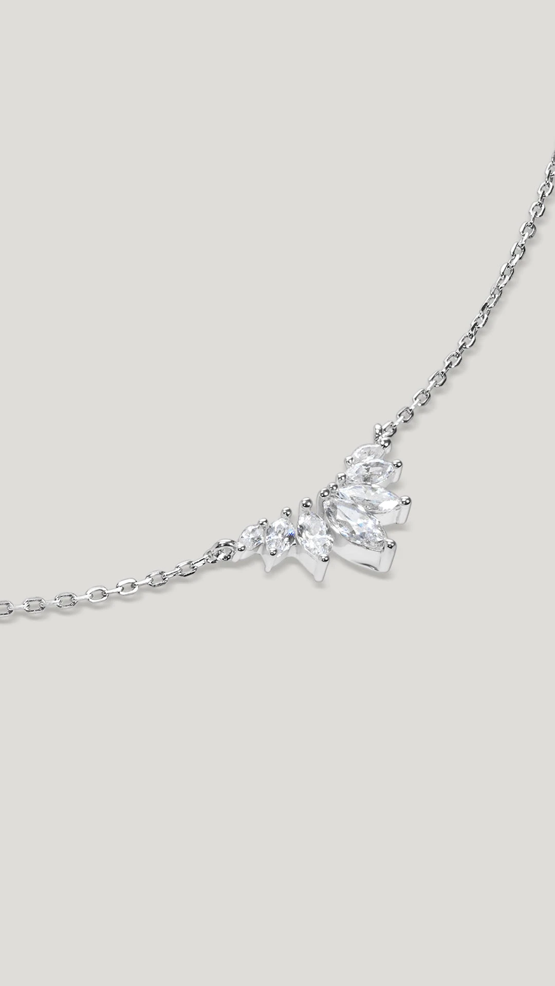 The Tulisa necklace is a classic piece that showcases a glittering cluster of marquis cuts. Complete with a slider closure, wear it at a length that suits you. Wear it solo with a lower neckline to show off the brilliance.
