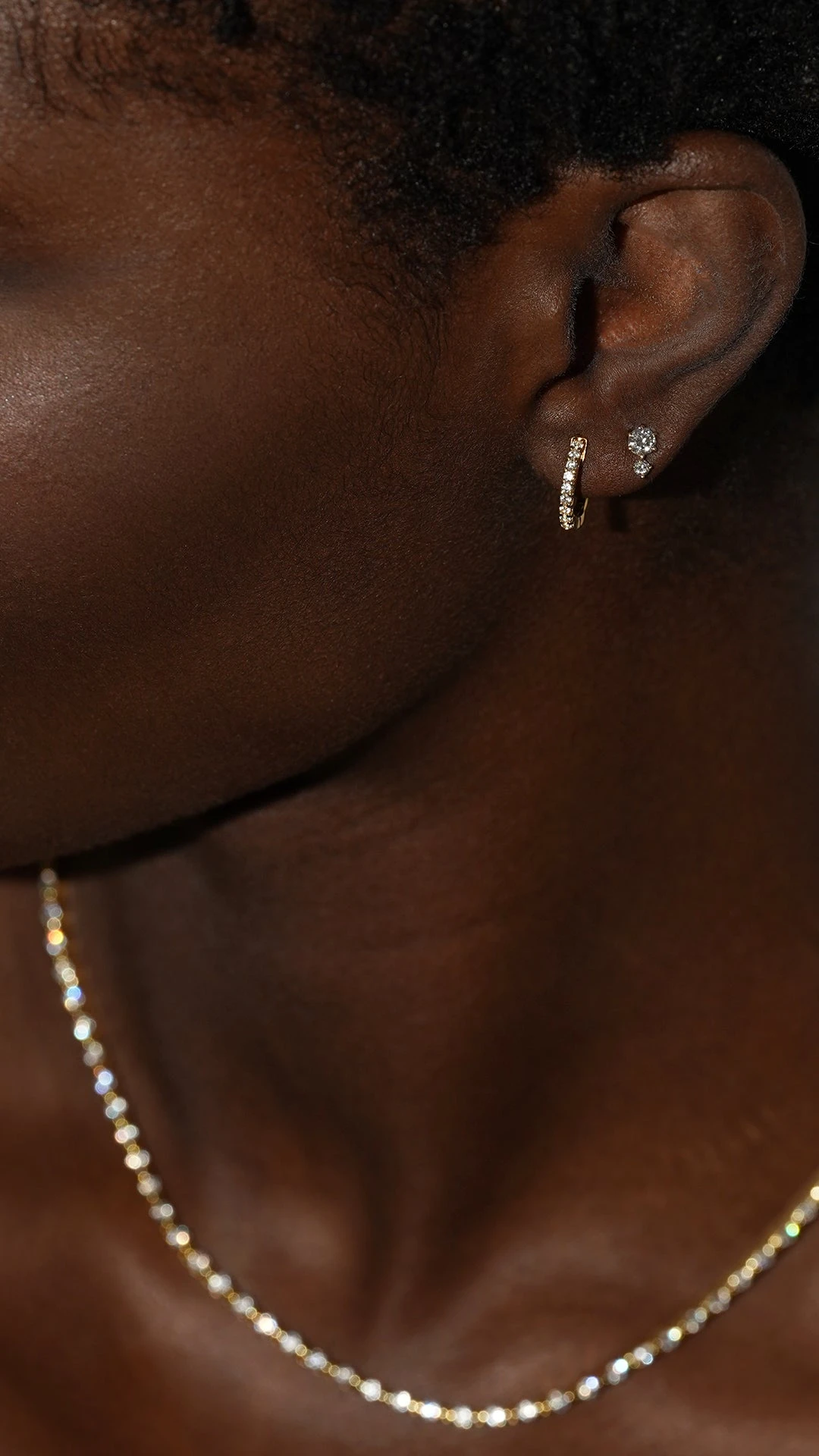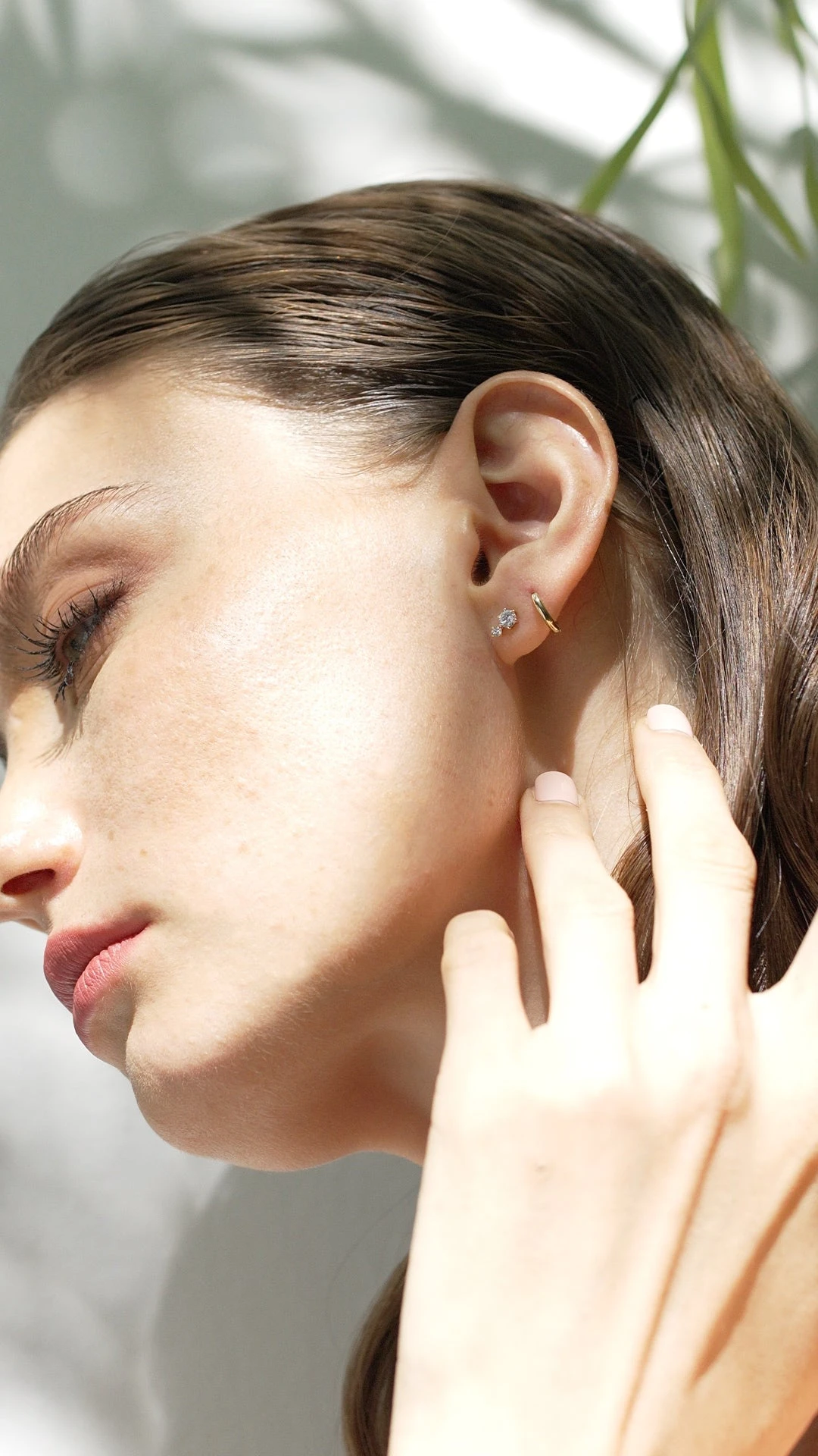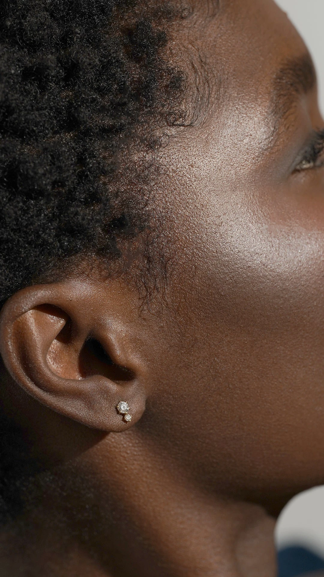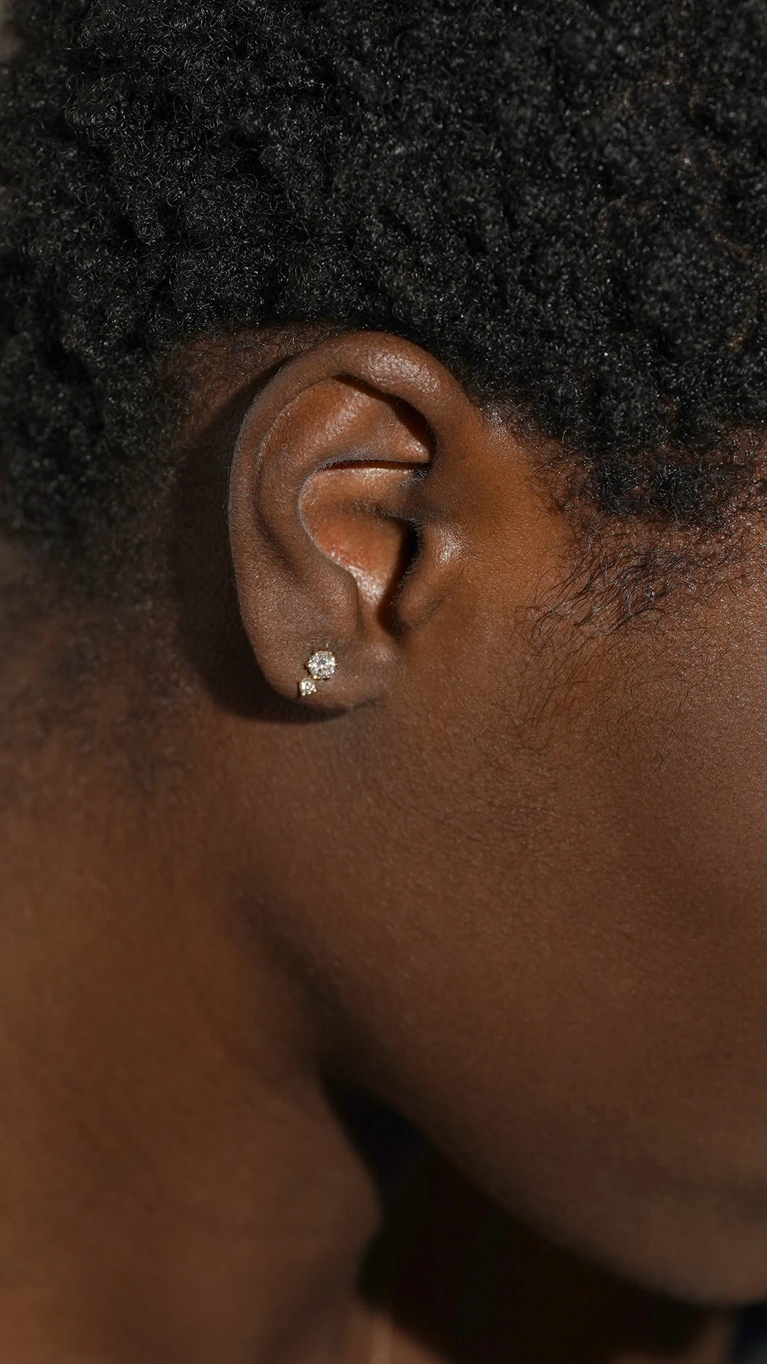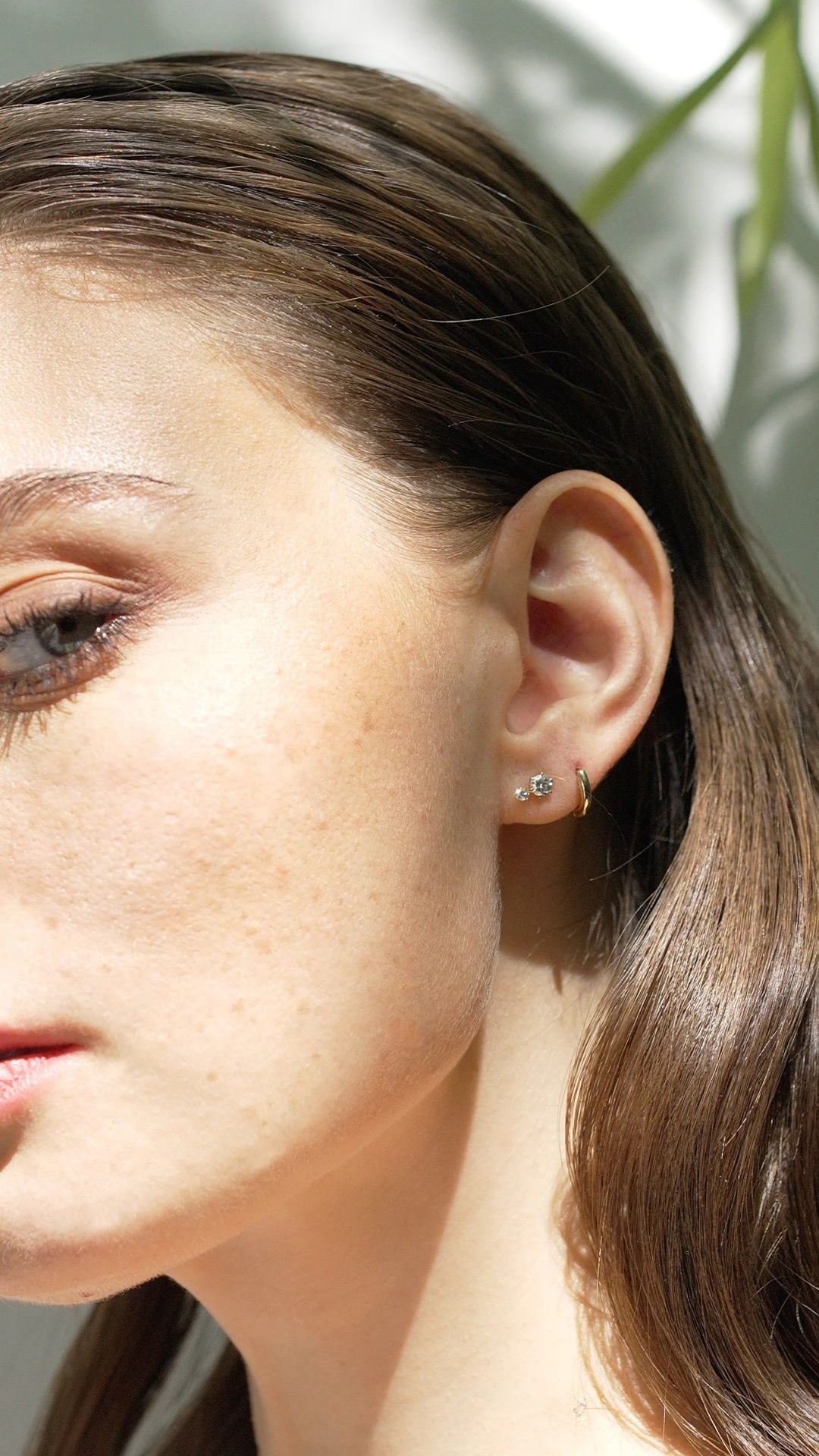 Good things come in tiny packages. A miniature-sized double diamond stud earring handcrafted in solid 9K yellow gold. Wear this cute asymmetric stud as an effortless update to your ear stack. Create your own earring combos and team with other tiny studs on your lobes.