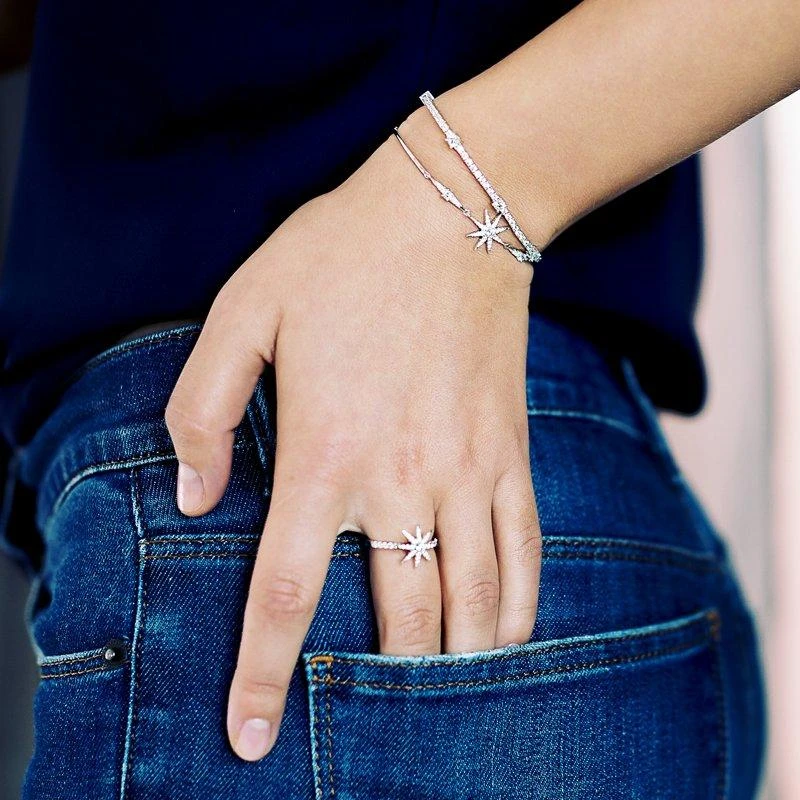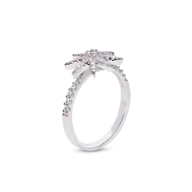 Inspired by bright starry nights and the magic of spontaneous adventures, this dainty White Gold plated ring set in Sterling Silver with shimmering micro stones in Diamond White. Wear it with the other pieces from the collection.