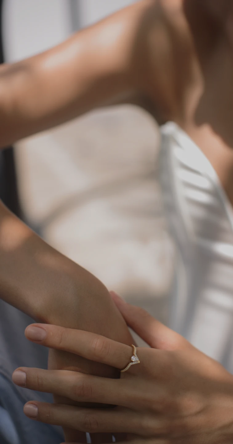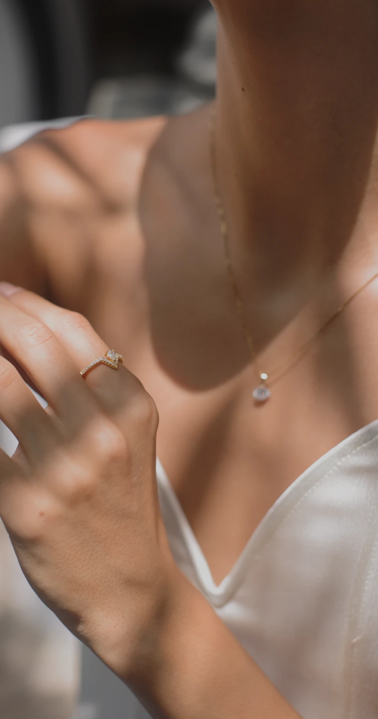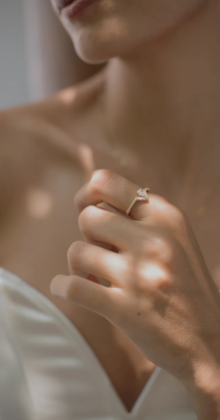 This ring is set in an intricate Pear-shaped keystone setting. The slim and lightweight design makes it a perfect everyday accessory.